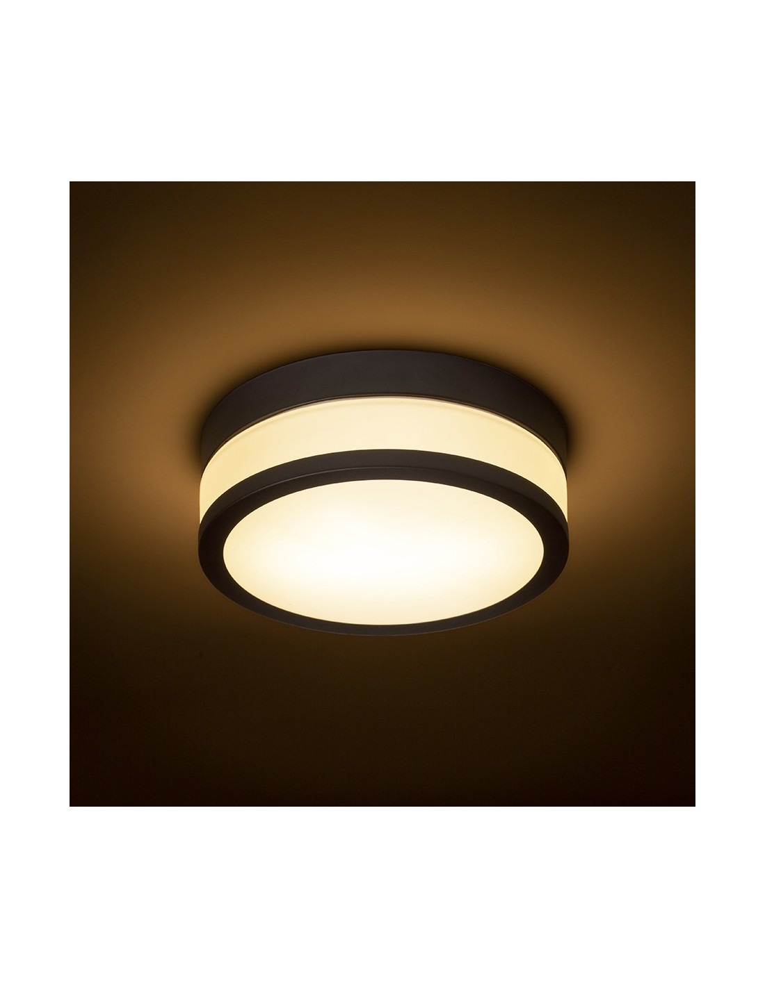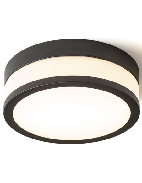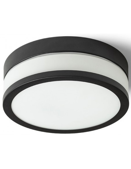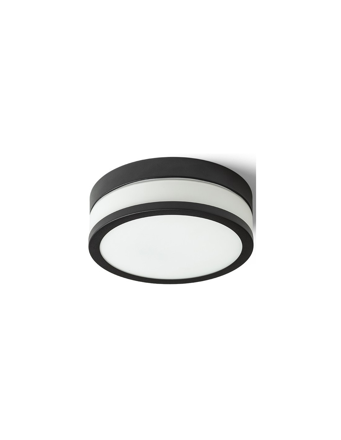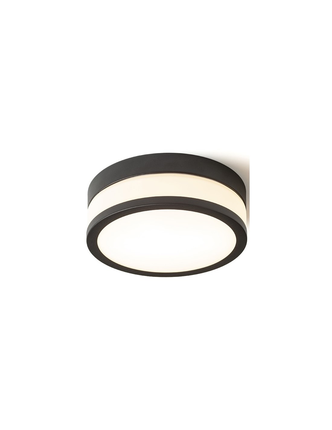 Badeværelseslampe plafond i et moderne og stilrent design, fremstillet i sortlakeret aluminium og hvid opalglas. Lampen er med indbygget 12W LED lyskilde. Lampen måler 23,5 cm i diameter.