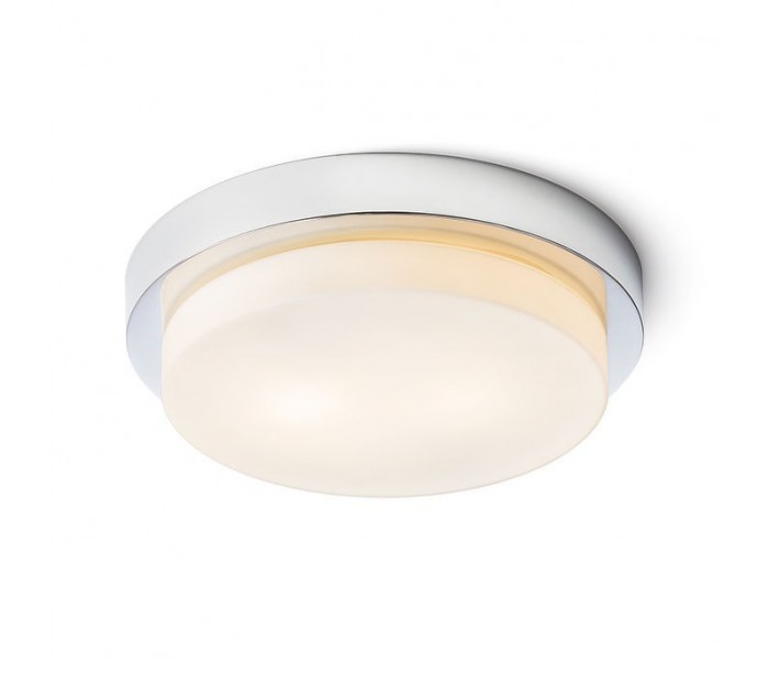 GORRA badeværelseslampe i et design af opalglas og krom. Lampen kobles direkte på lysnettet 230V. Der anvendes 2 x E14 lyskilder (medfølger ikke). Lampen kan benyttes til både loft og væg efter ønske.
