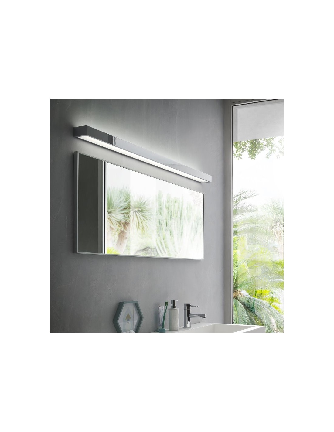 HORIZON badeværelseslampe udført i et design fremstillet i metal og polycarbonat med glas. Lampen måler 90 cm i bredden og anvender 1 x 24W SMD LED lyskilde (Inkl.). Lyset sendes både op og nedenud af lampen.