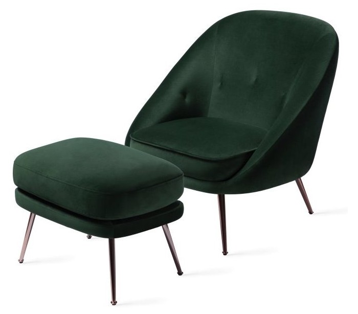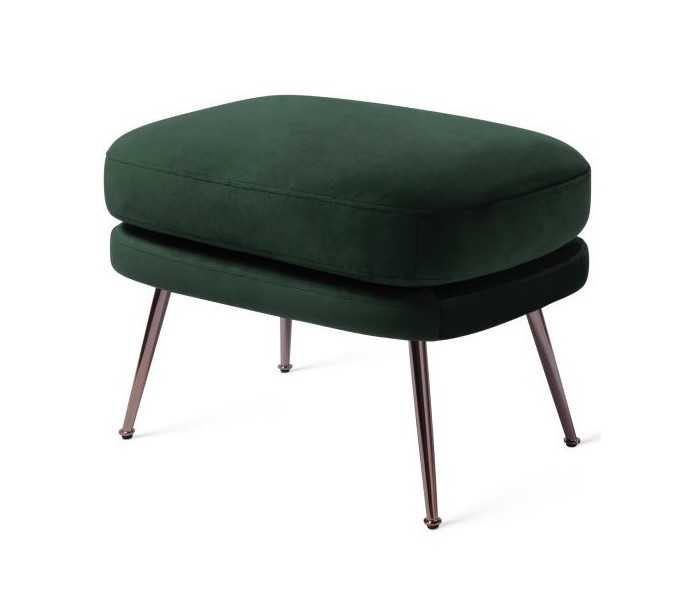 Rebun puf til lænestol i et moderne design, fremstillet i junglegrøn velour og stel i rødguld lakeret metal. Puffen måler 44 cm i højden og med siddehøjde på 44 cm.