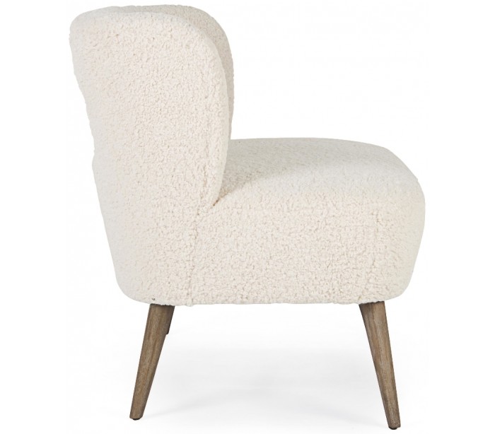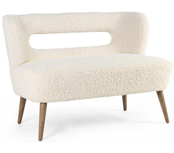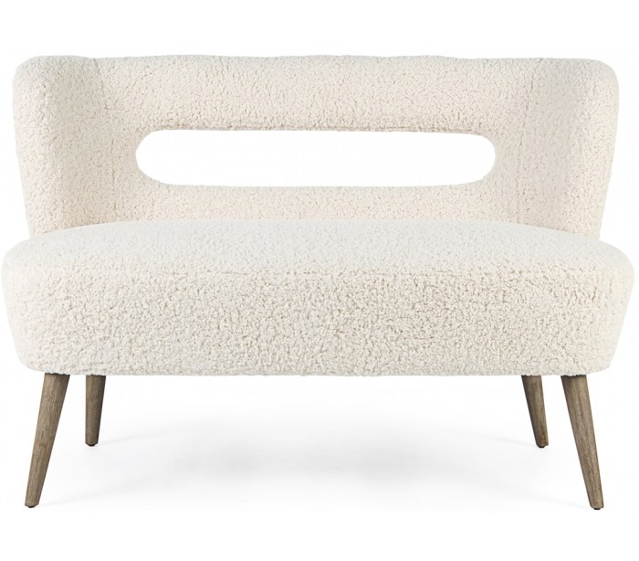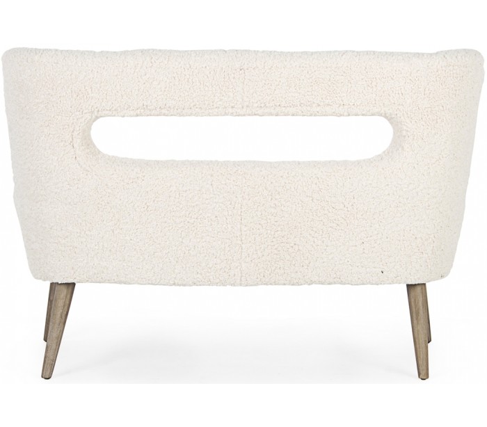 Bænk i faux uld og træ B115 cm - Creme/Brun