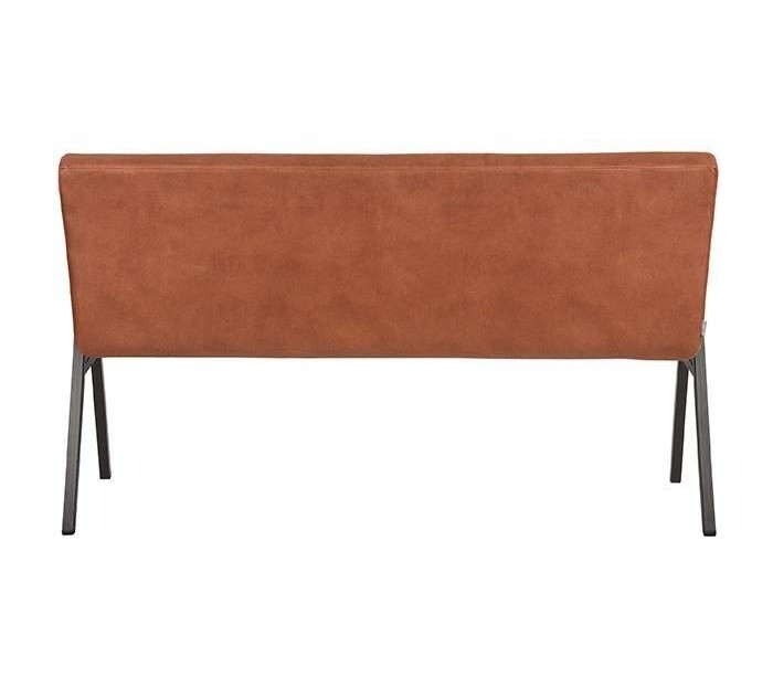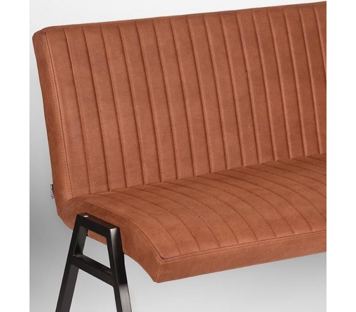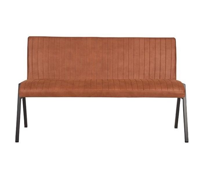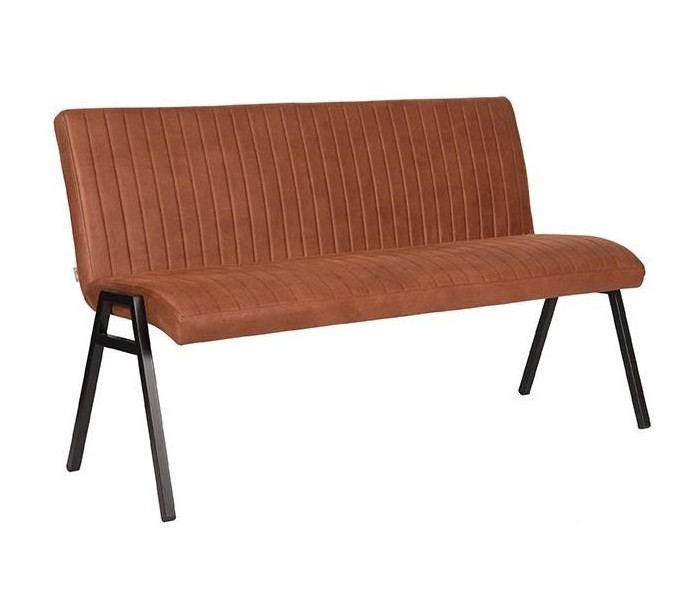 Spisebænk udført i et industrielt design af vintage cognac microfiber og stel i sortlakeret metal. Bænken måler 145 cm i bredden og 86 cm i højden og er polstret med højkvalitets skum.