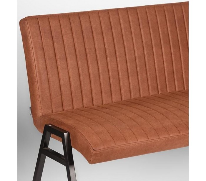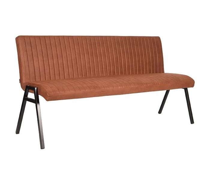 Spisebænk udført i et industrielt design af vintage cognac microfiber og stel i sortlakeret metal. Bænken måler 175 cm i bredden og 86 cm i højden og er polstret med højkvalitets skum.