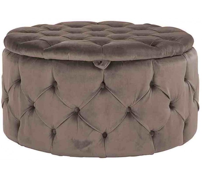 Lulu puf med opbevaring i velour Ø80 cm - Stengrå
