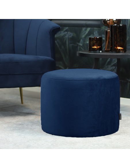 Anna puf i velour Ø50 x H37 cm - Mørkeblå