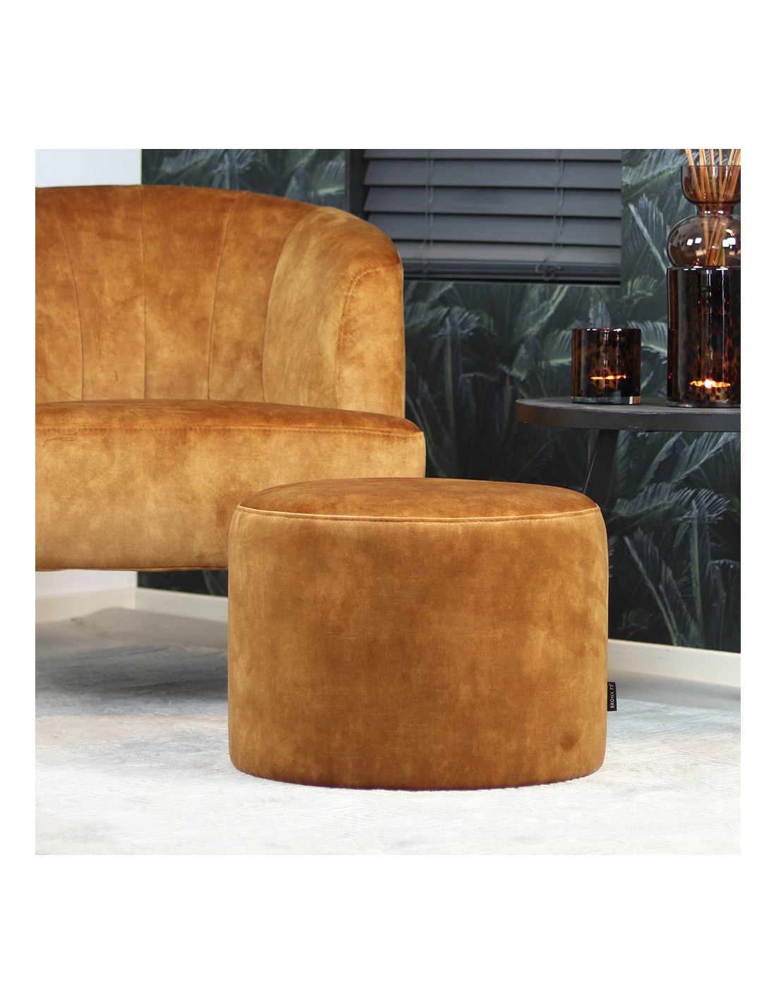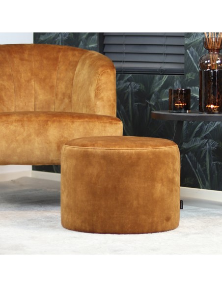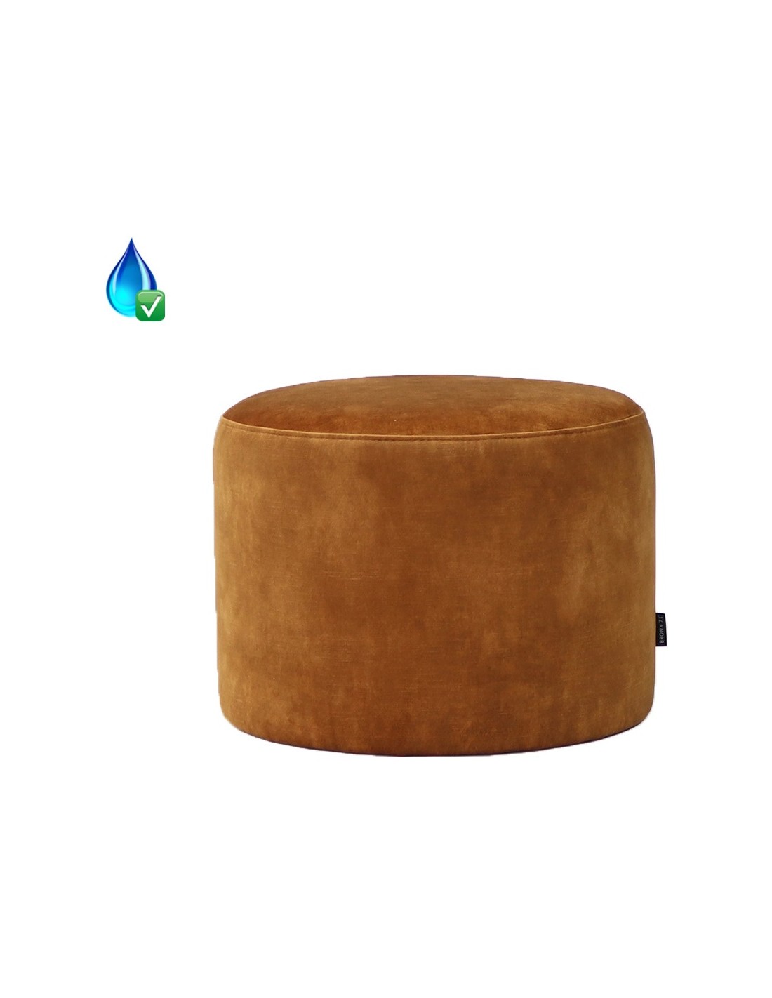 Beau puf udført i et moderne design, fremstillet i okkerfarvet velour. Puffen måler 37 cm i højden og 50 cm i diameter. Betrækket er med martindale 100.000 og er vandafvisende, som gør puffen særligt anvendelig til offentlige områder eller på børneværelser.