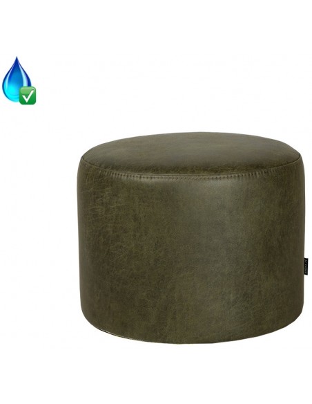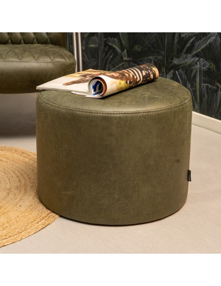 Kyla puf i øko-læder Ø50 x H37 cm - Vintage olivengrøn