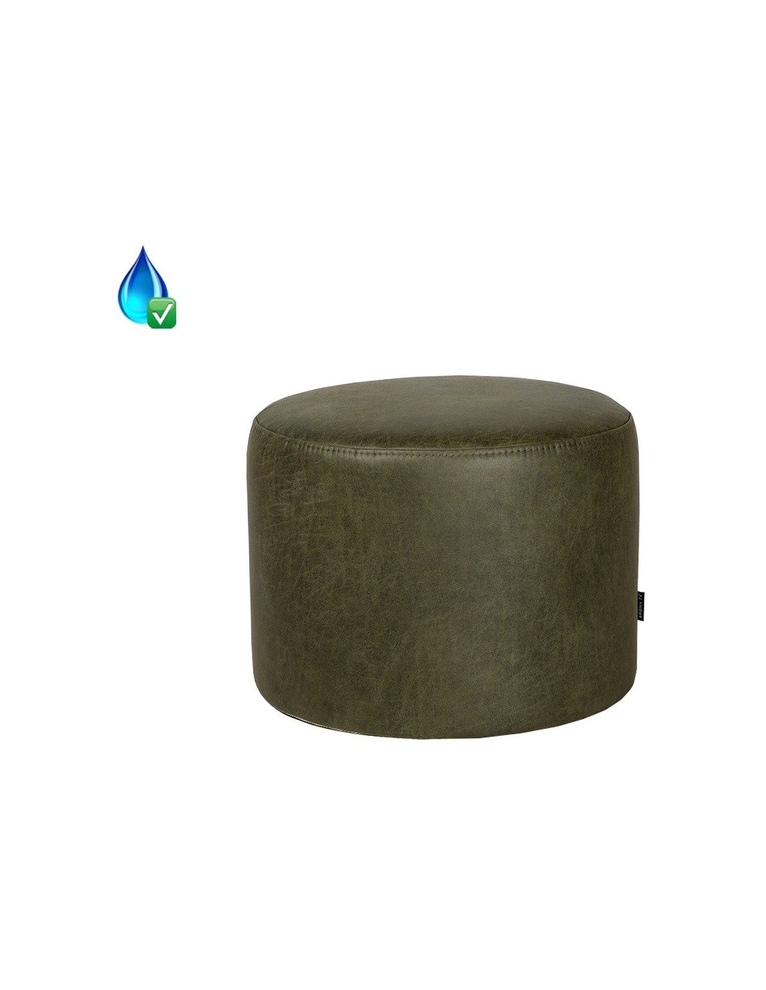 Kyla puf udført i et moderne design, fremstillet i vintage olivengrøn øko-læder (70% læder/30% polyester). Puffen måler 37 cm i højden og 50 cm i diameter. Betrækket er med martindale 30.000 og er vandafvisende, som gør puffen særligt anvendelig til offentlige områder eller på børneværelser.
