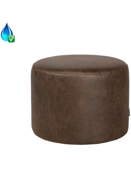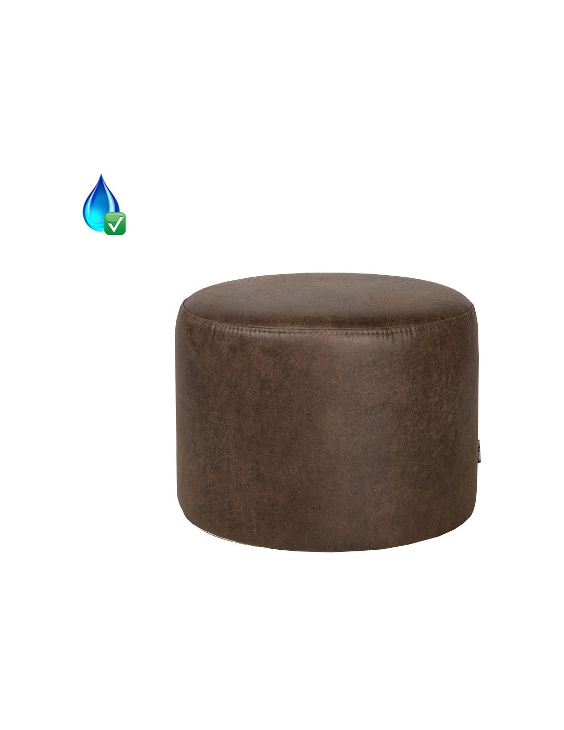 Kyla puf udført i et moderne design, fremstillet i vintage brun øko-læder (70% læder/30% polyester). Puffen måler 37 cm i højden og 50 cm i diameter. Betrækket er med martindale 30.000 og er vandafvisende, som gør puffen særligt anvendelig til offentlige områder eller på børneværelser.