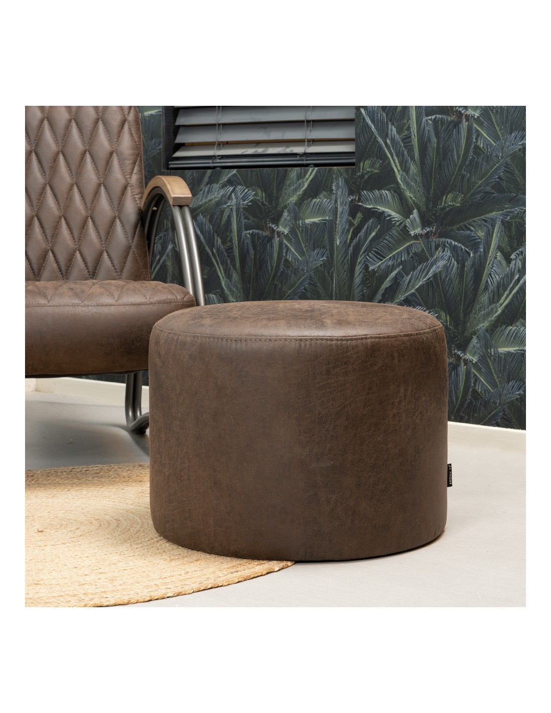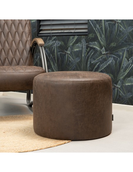 Kyla puf i øko-læder Ø50 x H37 cm - Vintage brun