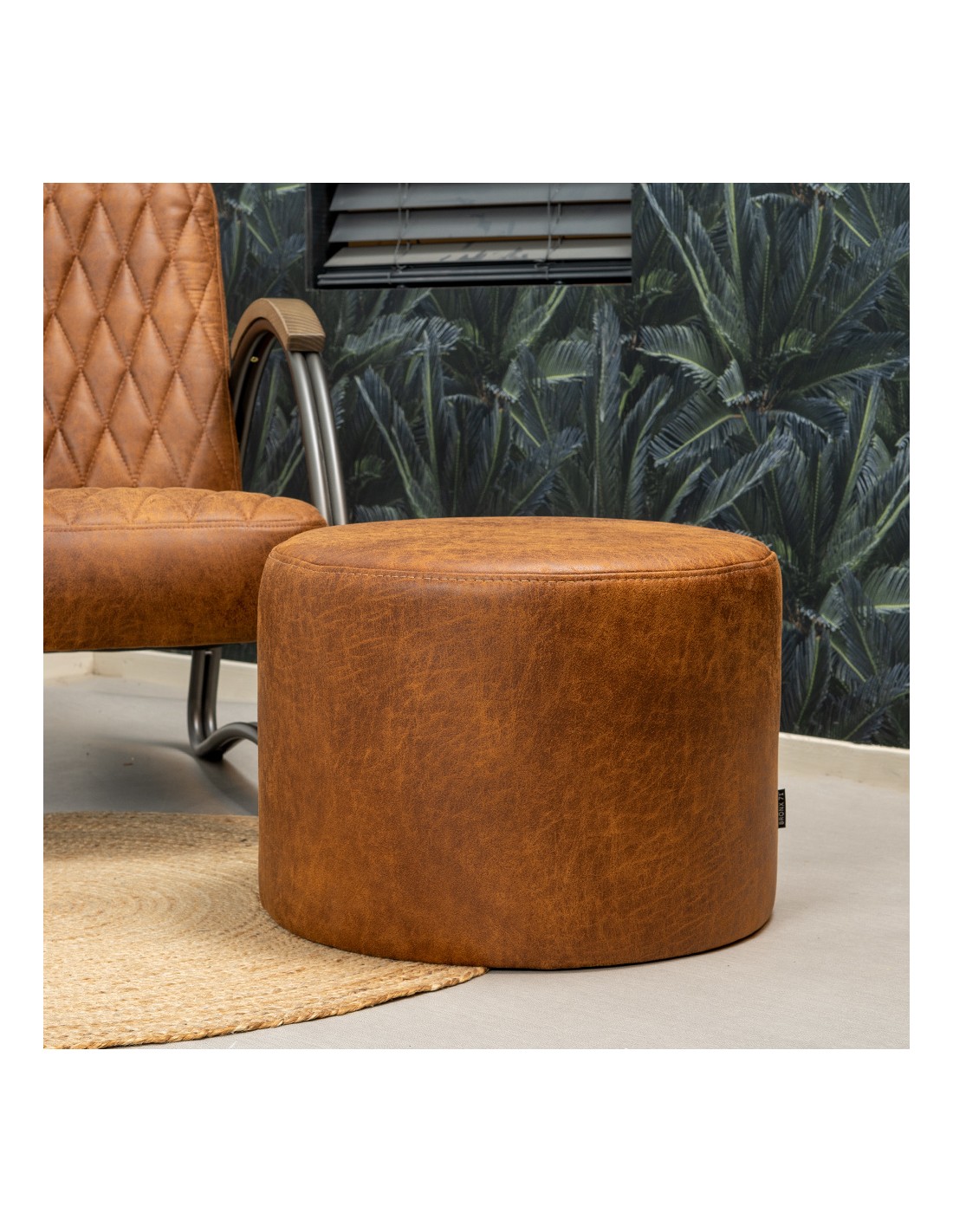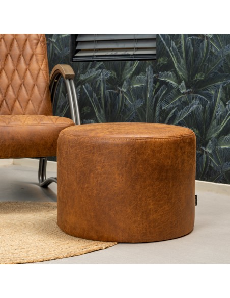 Kyla puf i øko-læder Ø50 x H37 cm - Vintage cognac