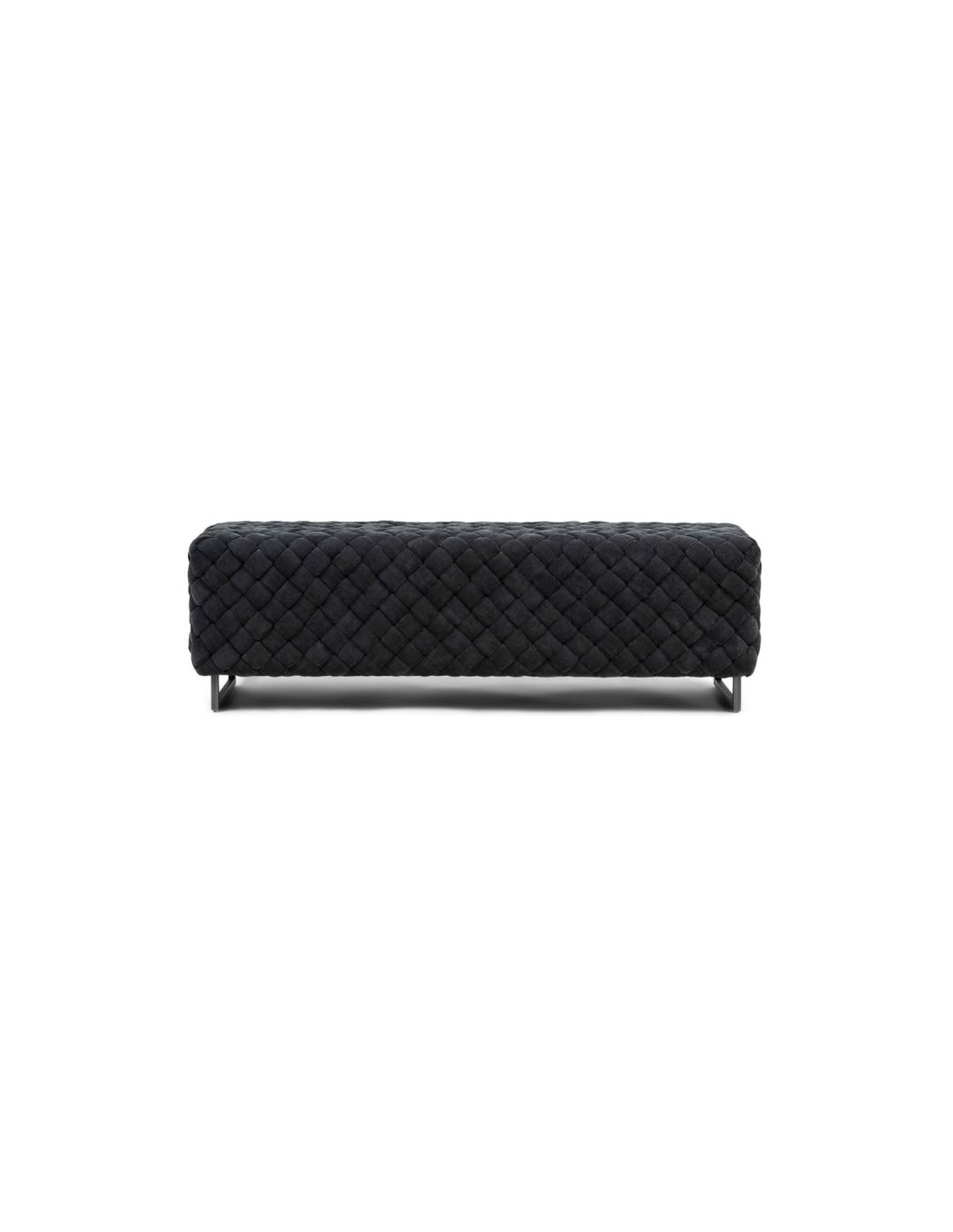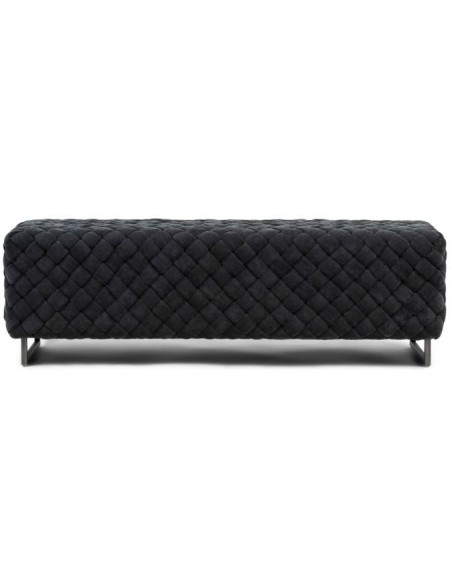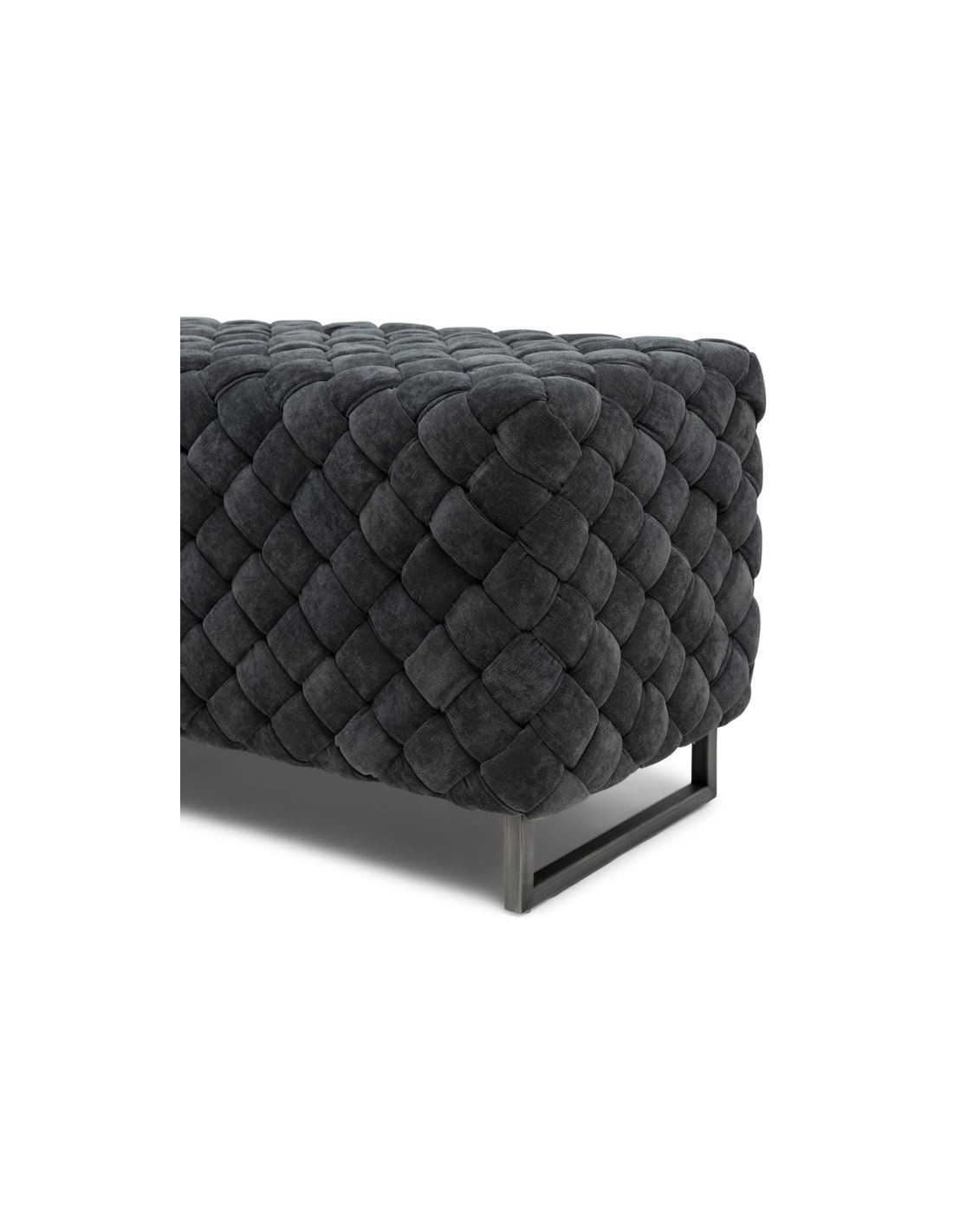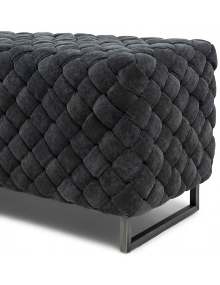Riviera Maison bænk i et design af dueblå tweed og industrielt grålakeret metal. Bænken måler 46 cm i højden og 150 cm i bredden.