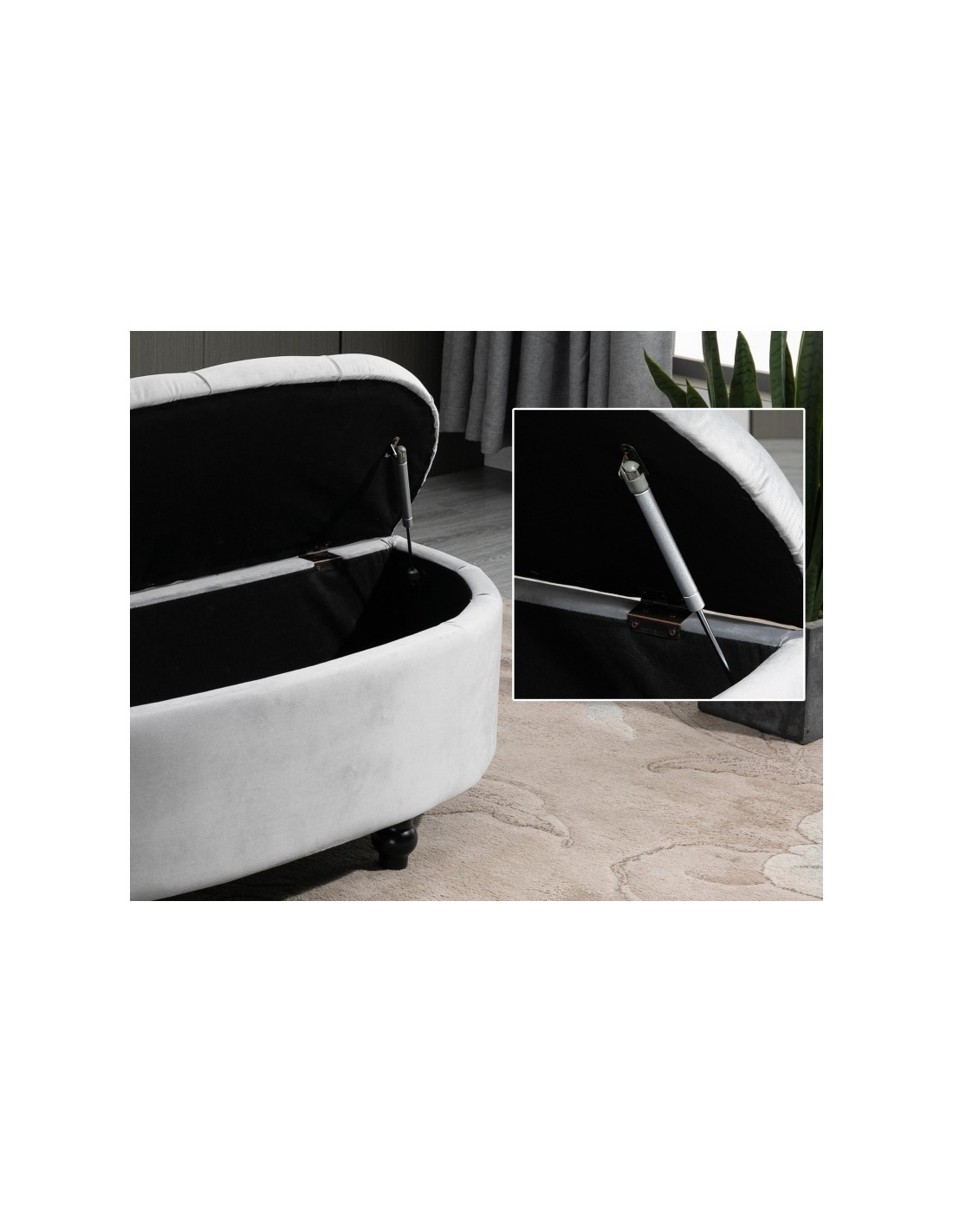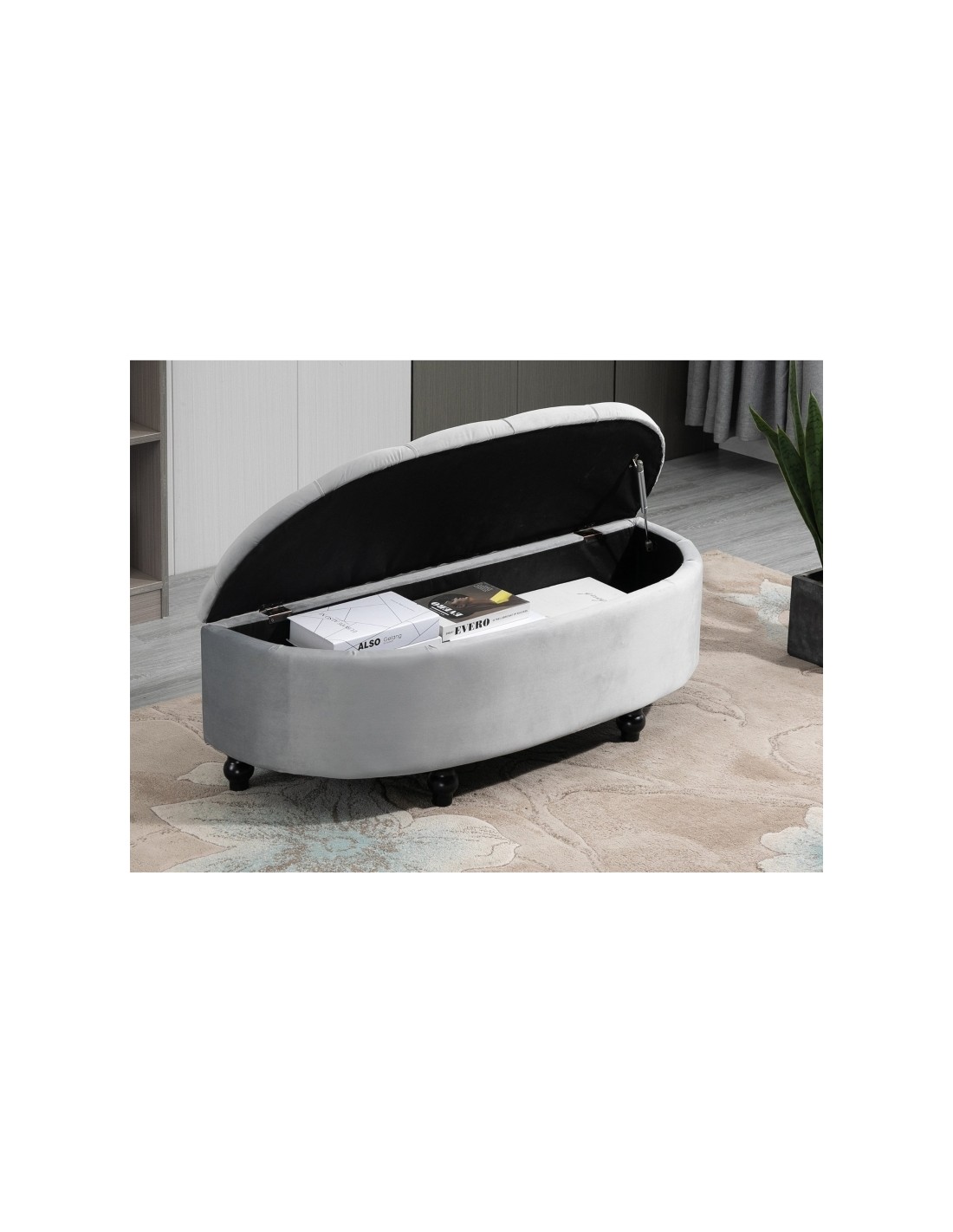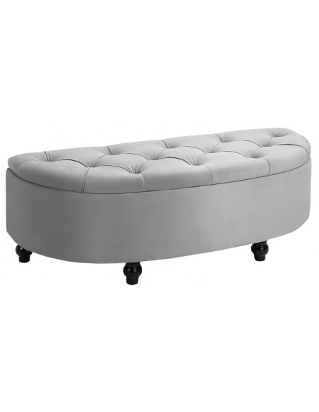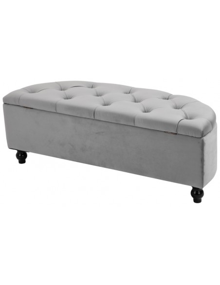 Bænk med opbevaring i velour og træ B120 cm - Sort/Grå
