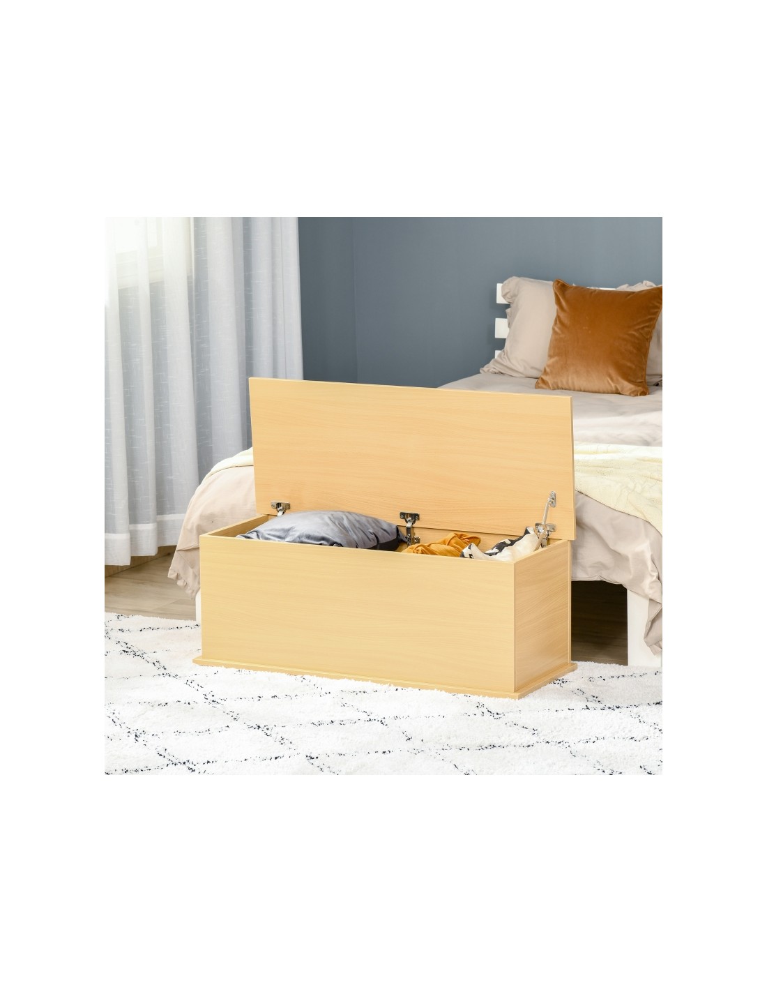 Bænk med opbevaring i møbelplade B100 cm - Bøg