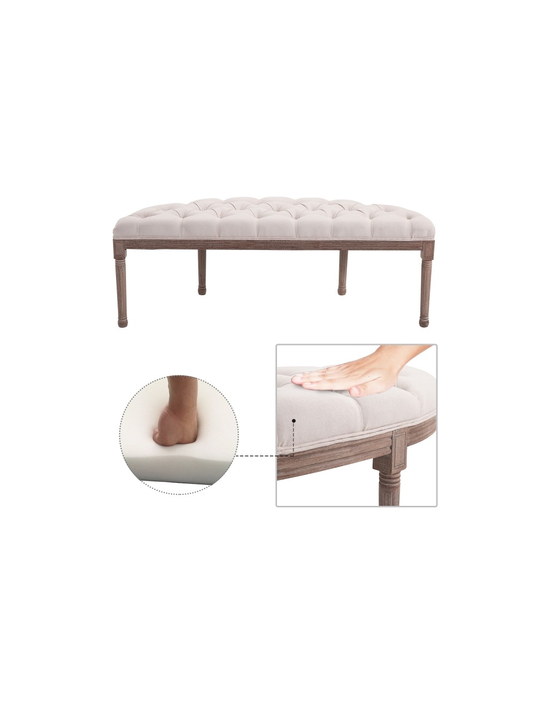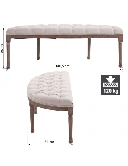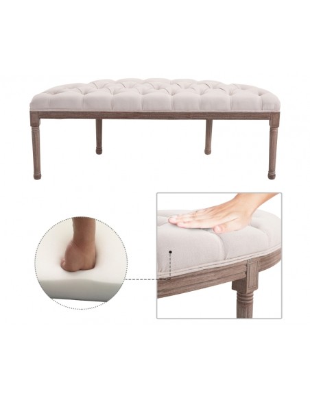 Bænk i linned og træ B140,5 cm - Vintage brun/Beige