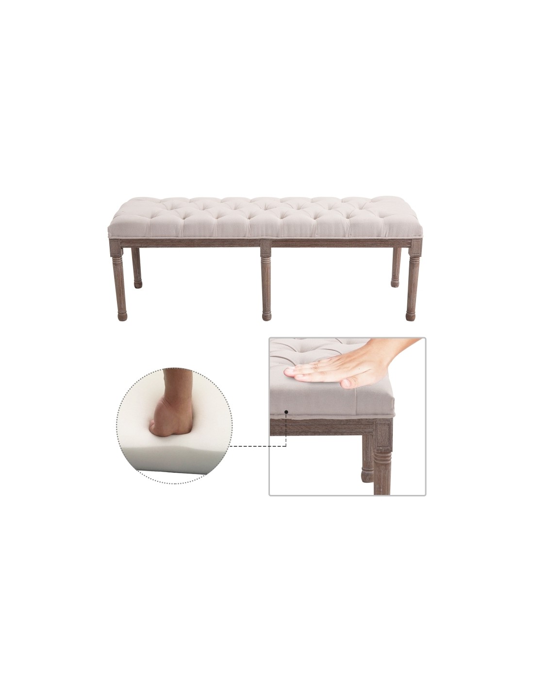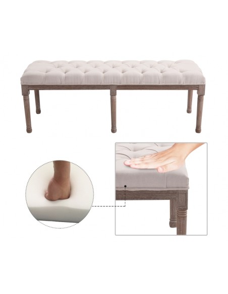 Bænk i linned og træ B142 cm - Vintage brun/Beige