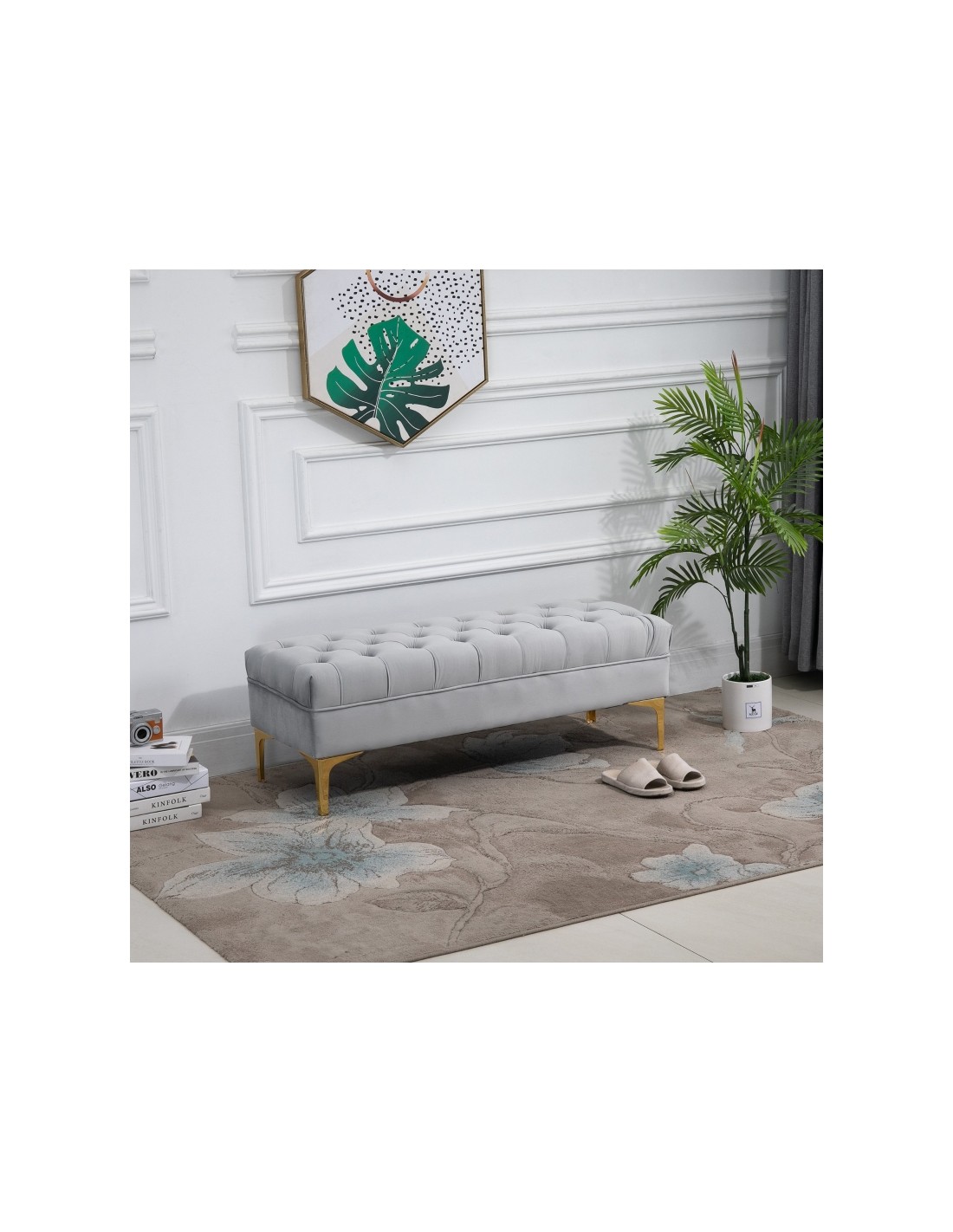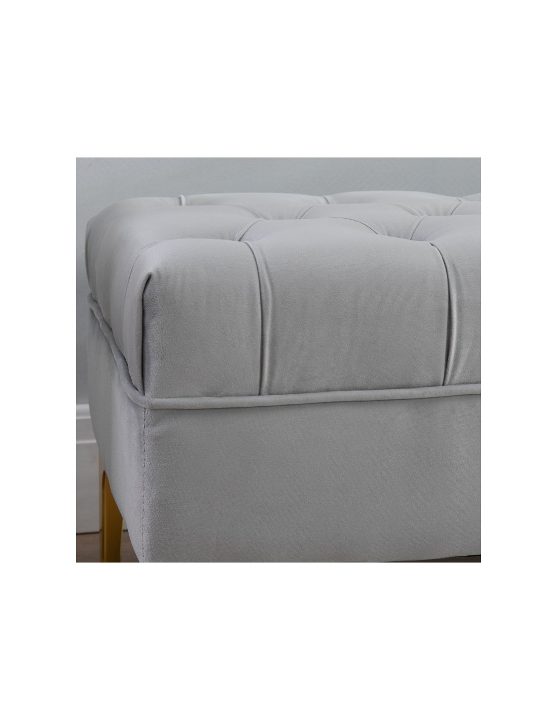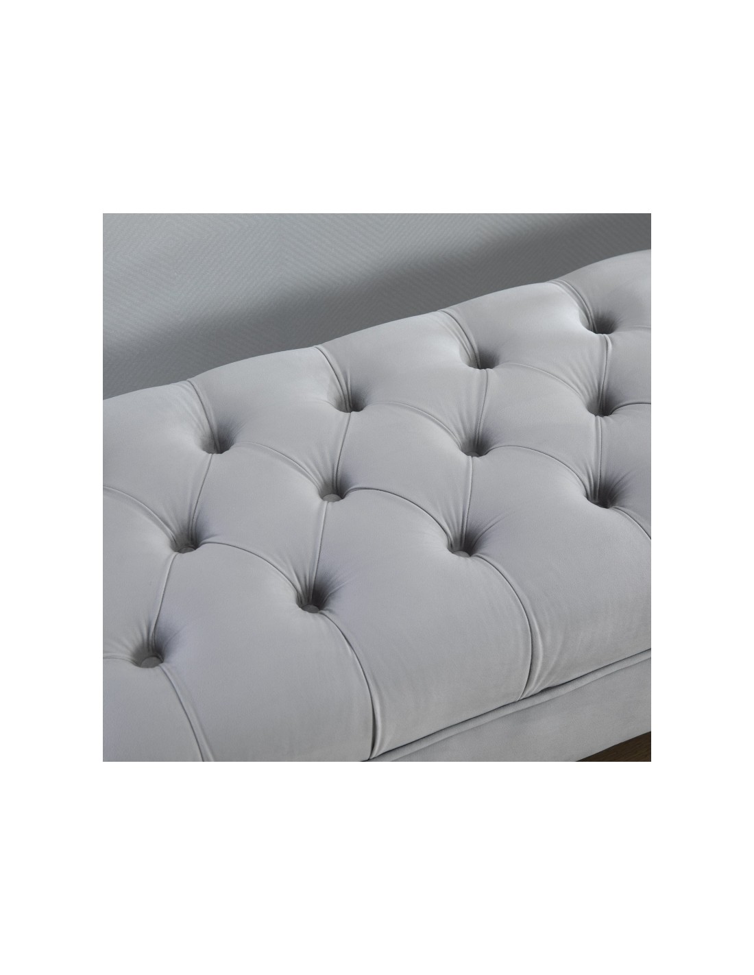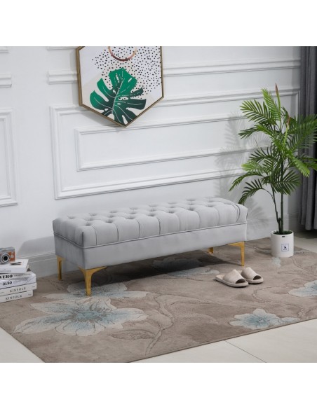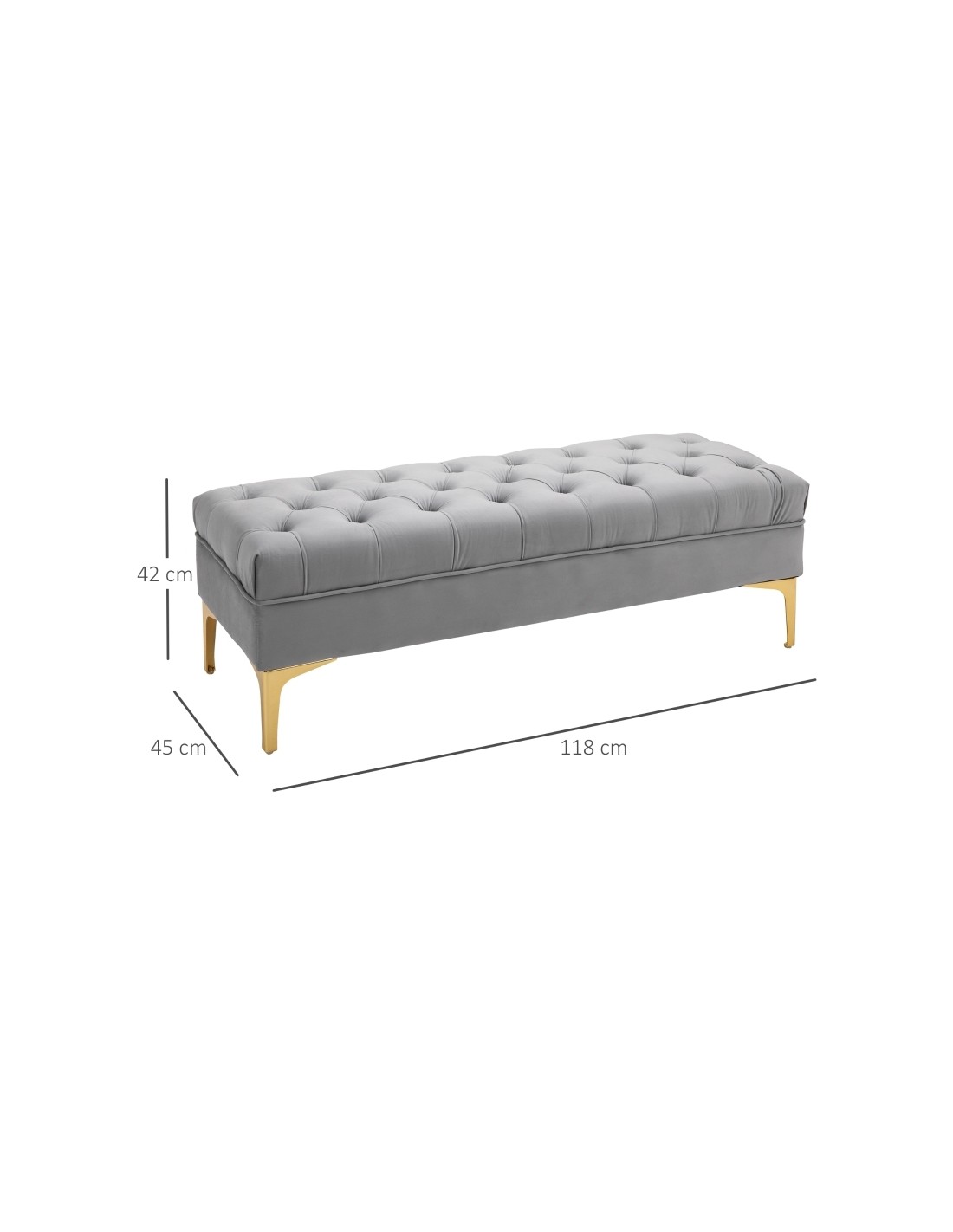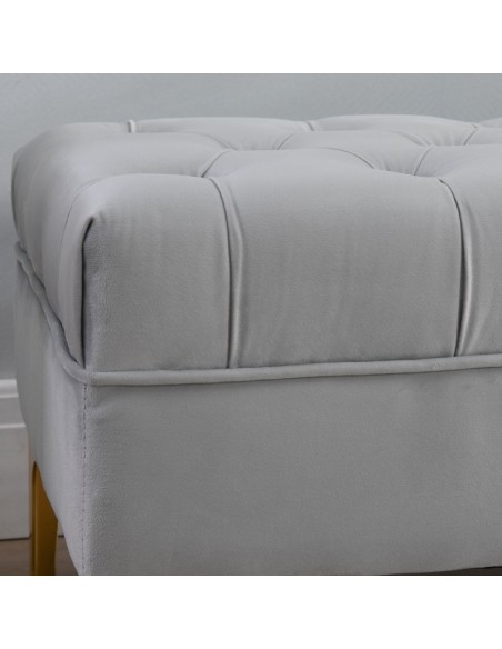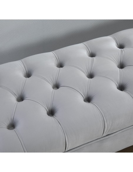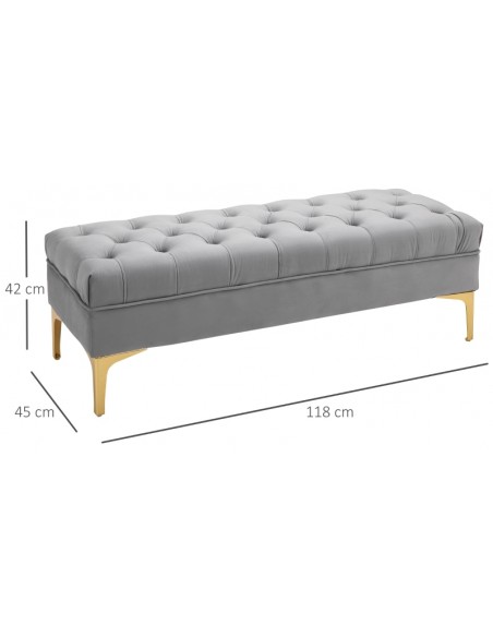 Bænk udført i et design af velpolstret velour og med ben i metal. Bænken måler 118 x 45 cm i bredde og dybde.