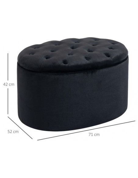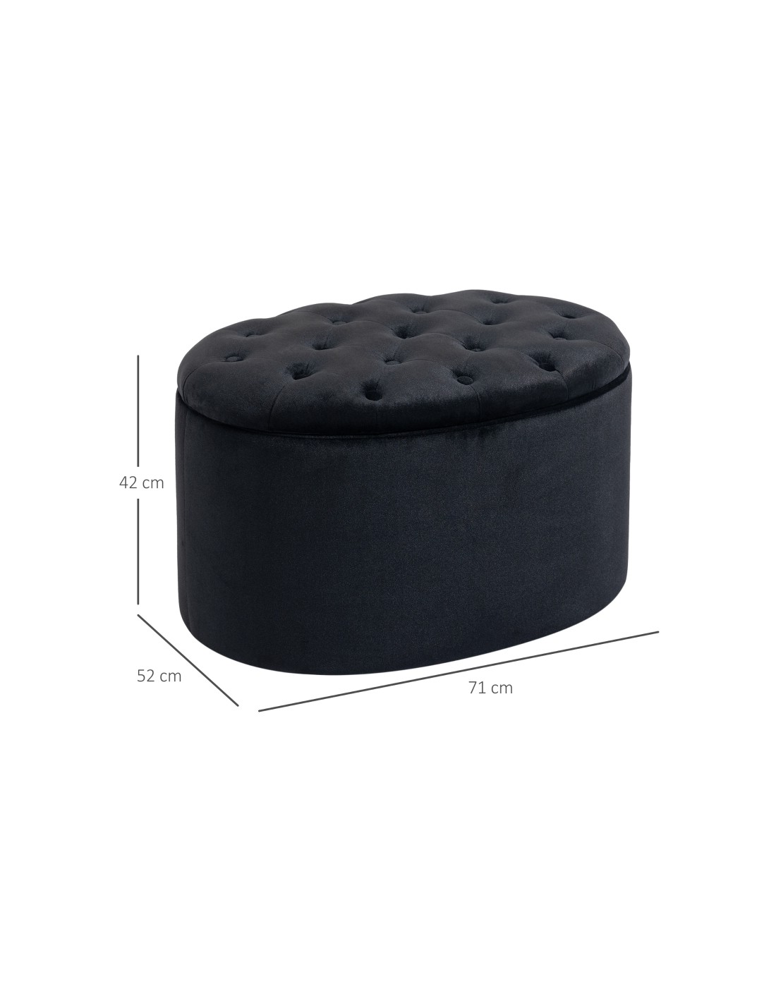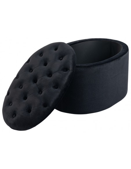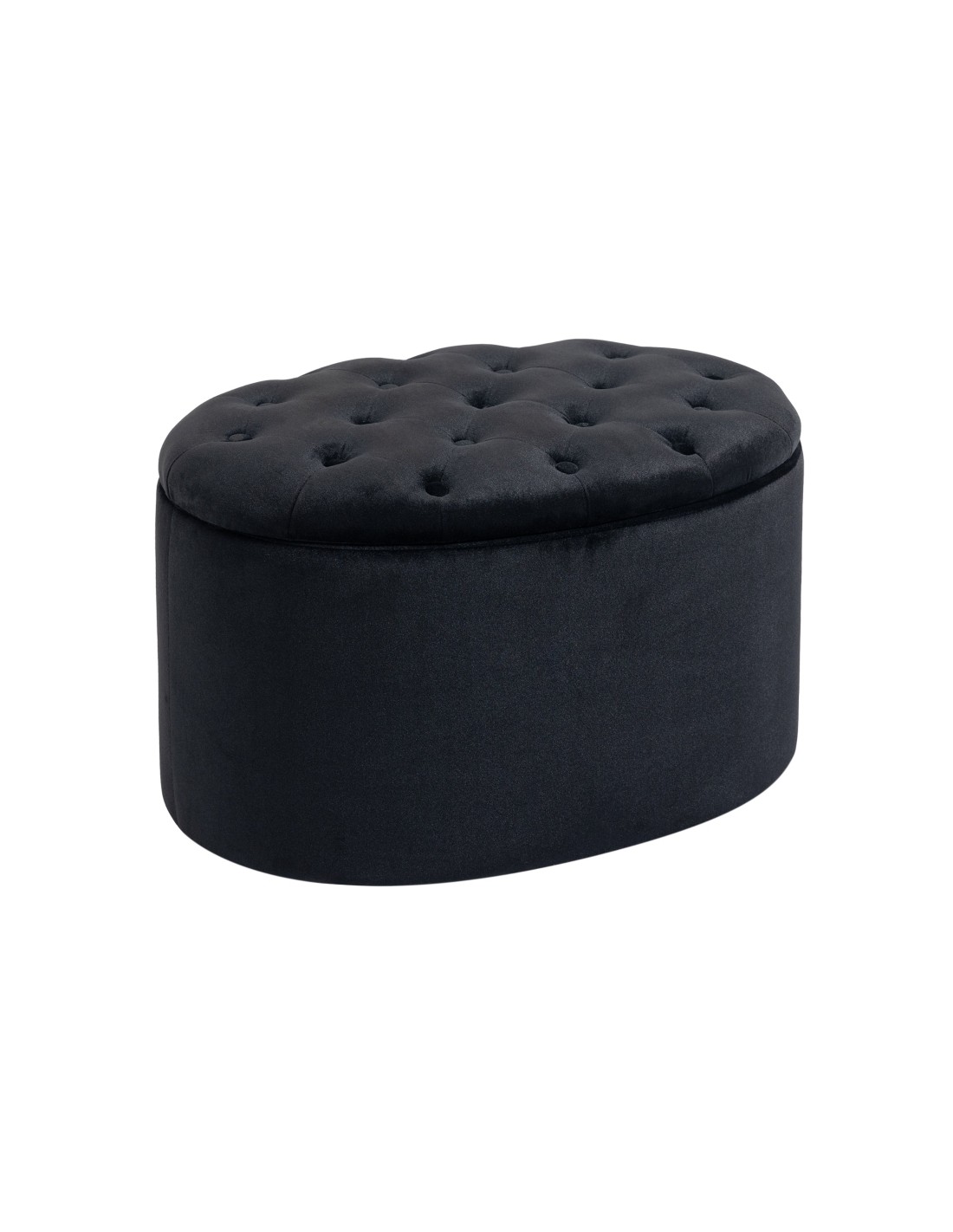 Oval bænk/puf med opbevaring i velour 71 x 52 cm - Sort