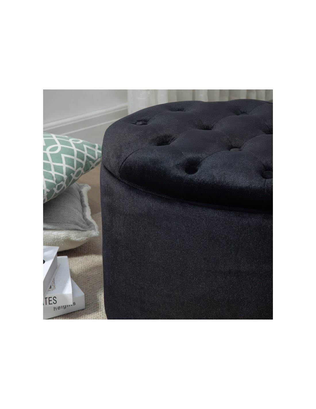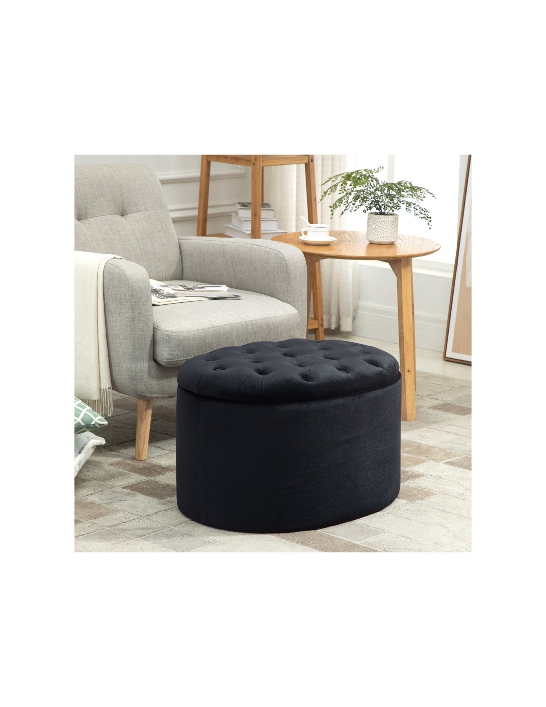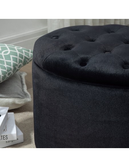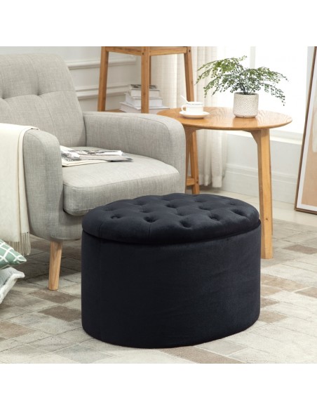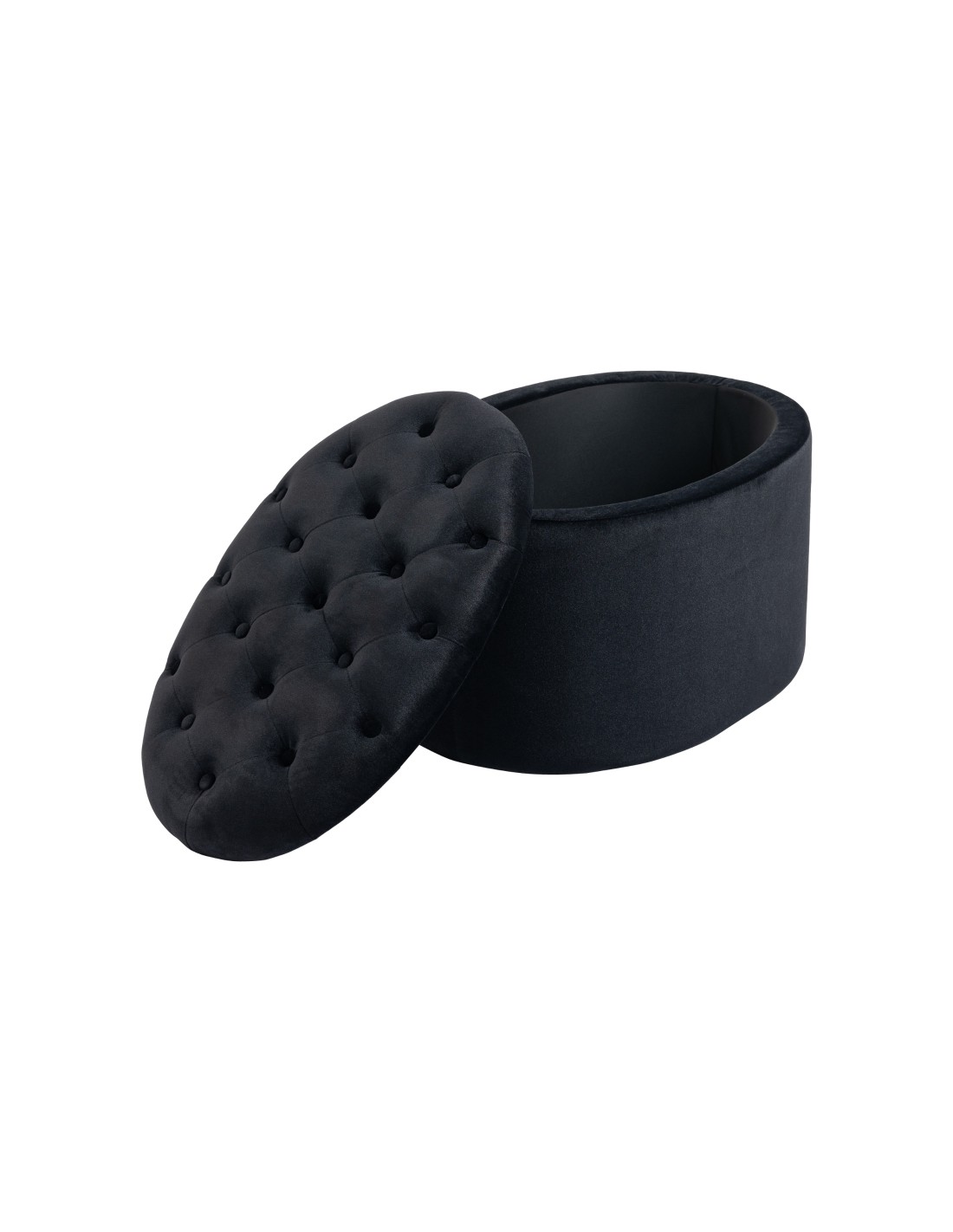 Oval bænk/puf med opbevaring i velour 71 x 52 cm - Sort