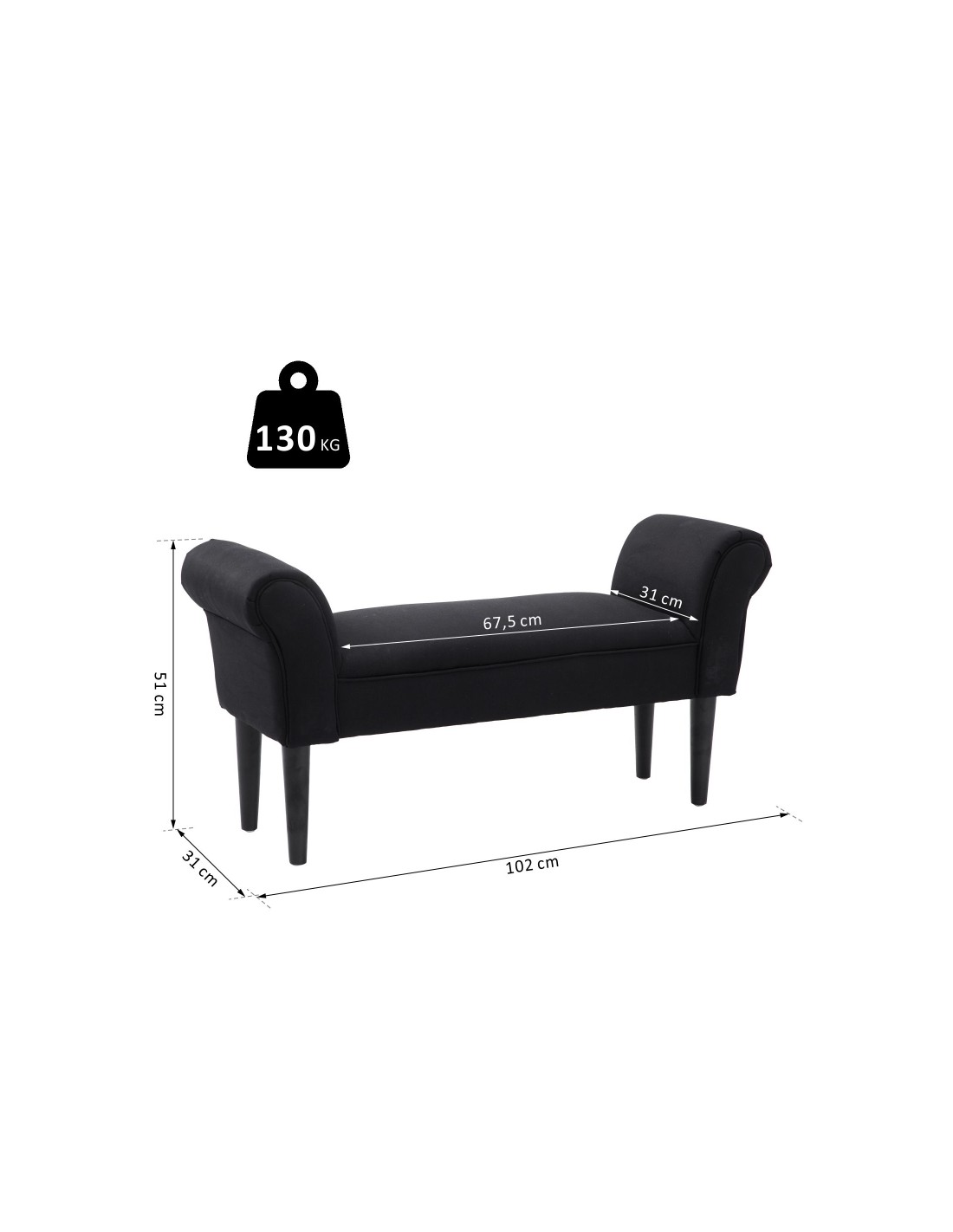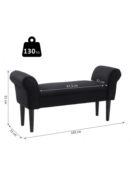 Bænk i polyester og træ 102 x 31 cm - Sort/Sort