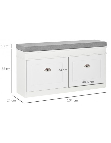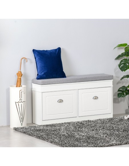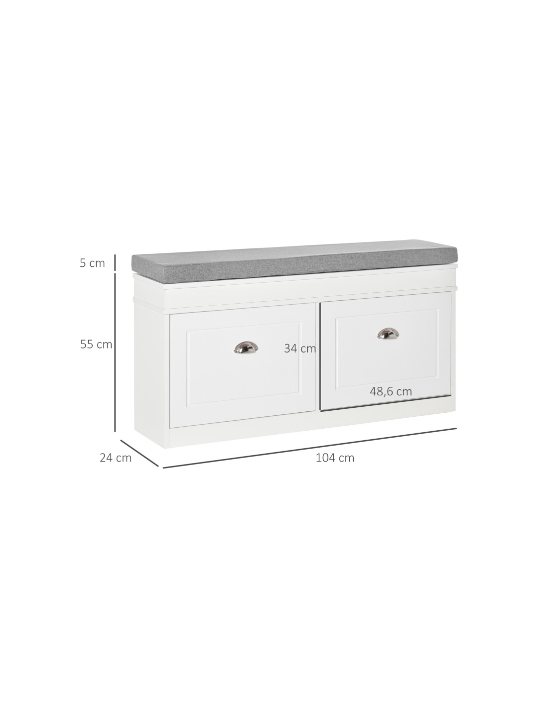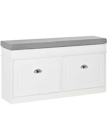 Bænk med skoskabe i møbelplade og polyester B104 cm - Hvid/Grå