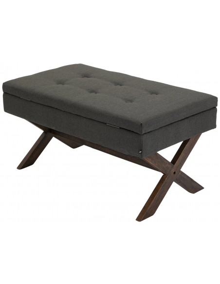 Bænk med opbevaring i træ og polyester 98 x 57 cm - Antik brun/Mørkegrå