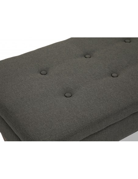 Bænk med opbevaring, udført i et design af træ og polstret polyester. Bænken måler 98 x 57 cm i bredde og dybde. Siddehøjden er 51 cm.