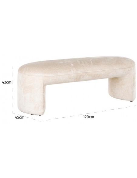 Bænk fra hollandske Richmond Interiors, udført i et design af hvid chenille polyester. Bænken måler 42 cm i højden og 120 x 45 cm i bredde og dybde.