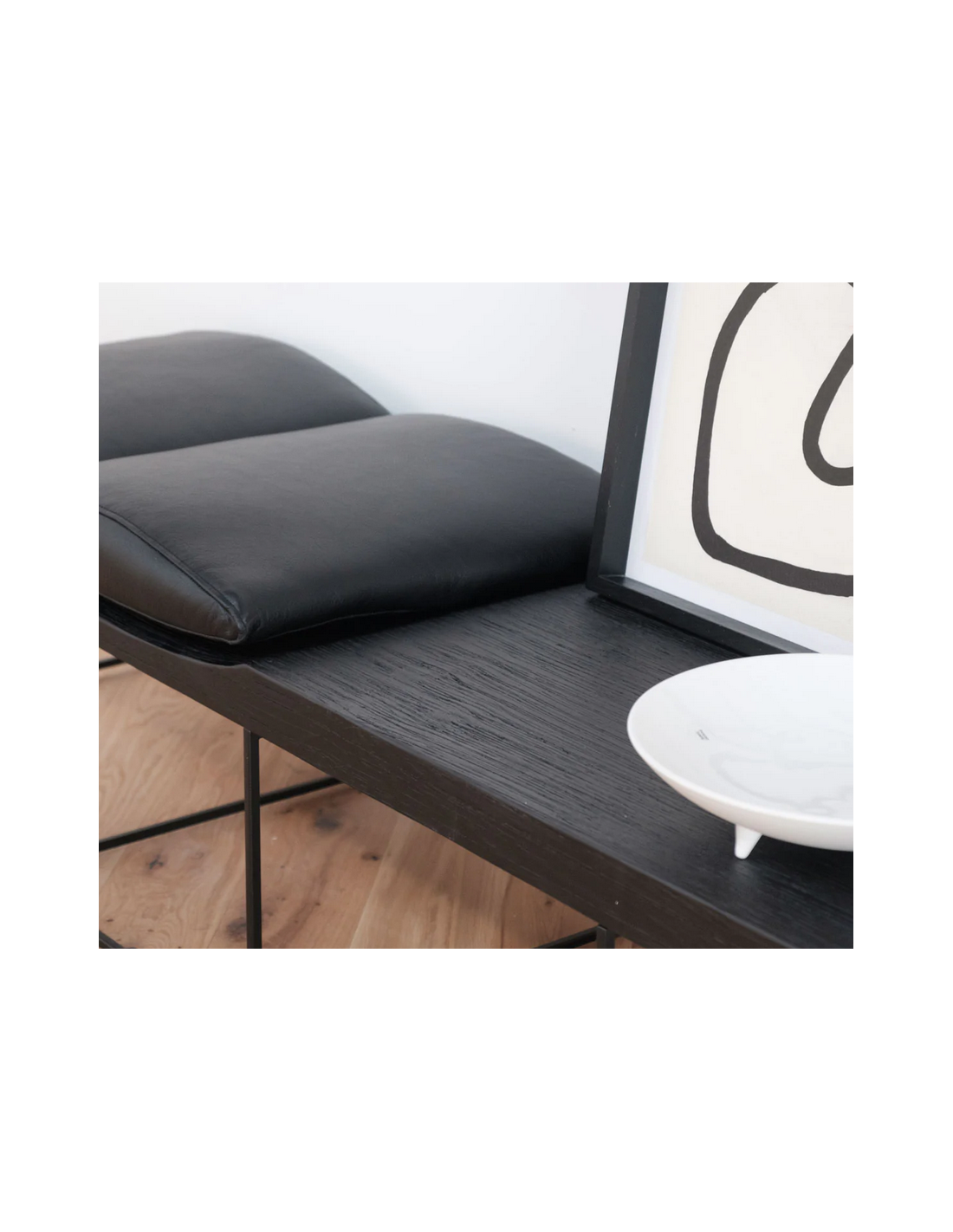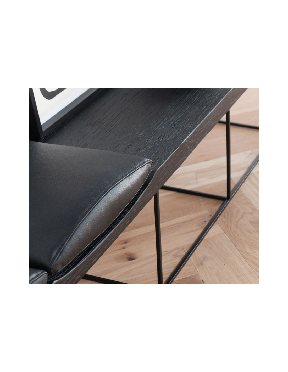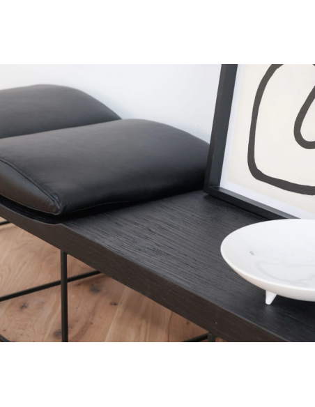 Leonore bænk i metal, finér og læder B180 cm - Antik sort/Sort