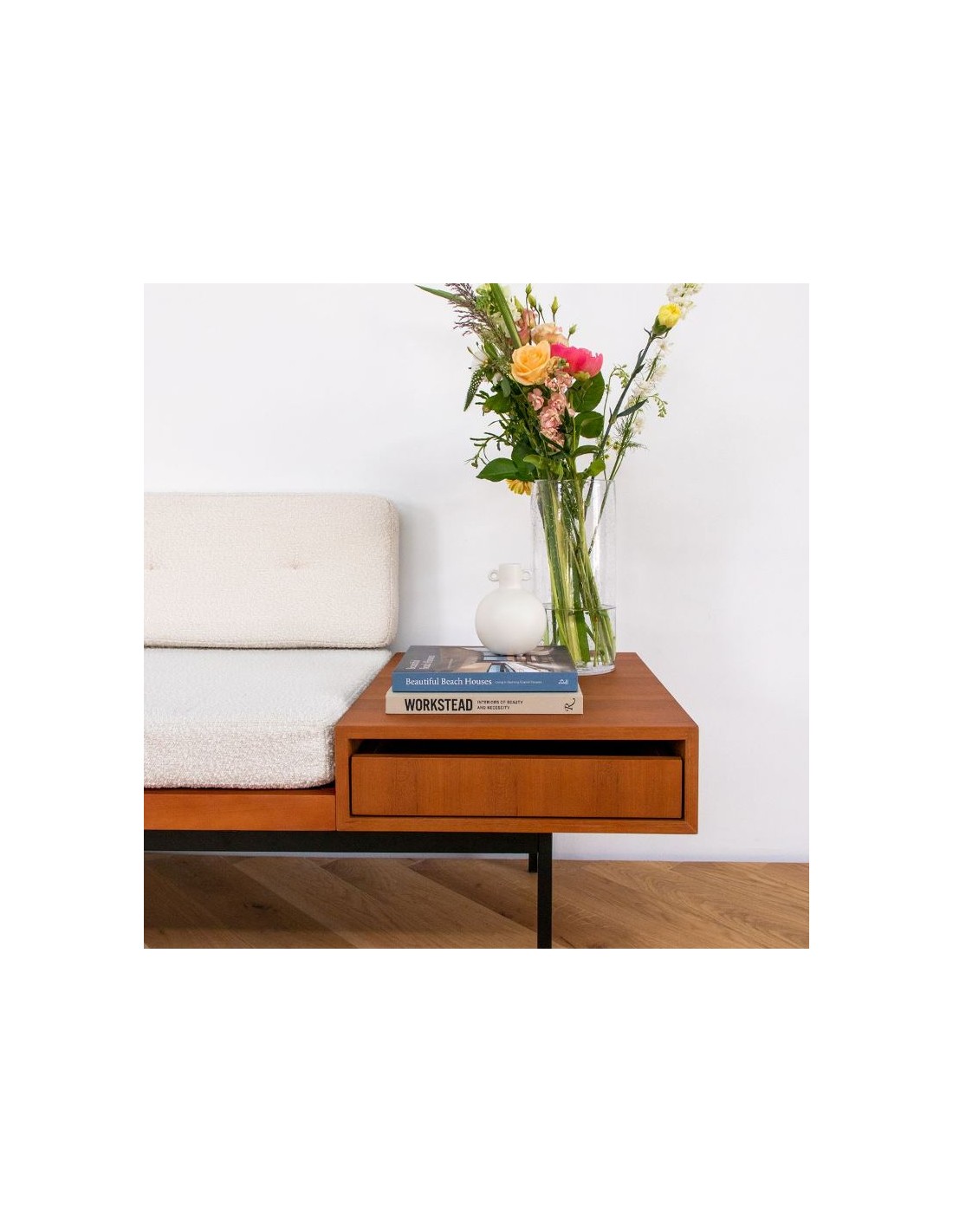 • Materiale: Metal/Teak finér/Bouclé polyester