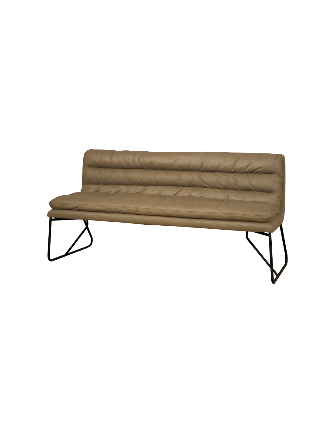 Spisebænk udført i et industrielt design af vintage grøn microfiber og stel i sortlakeret metal. Bænken måler 155 cm i bredden og 90 cm i højden og er polstret med højkvalitets skum.