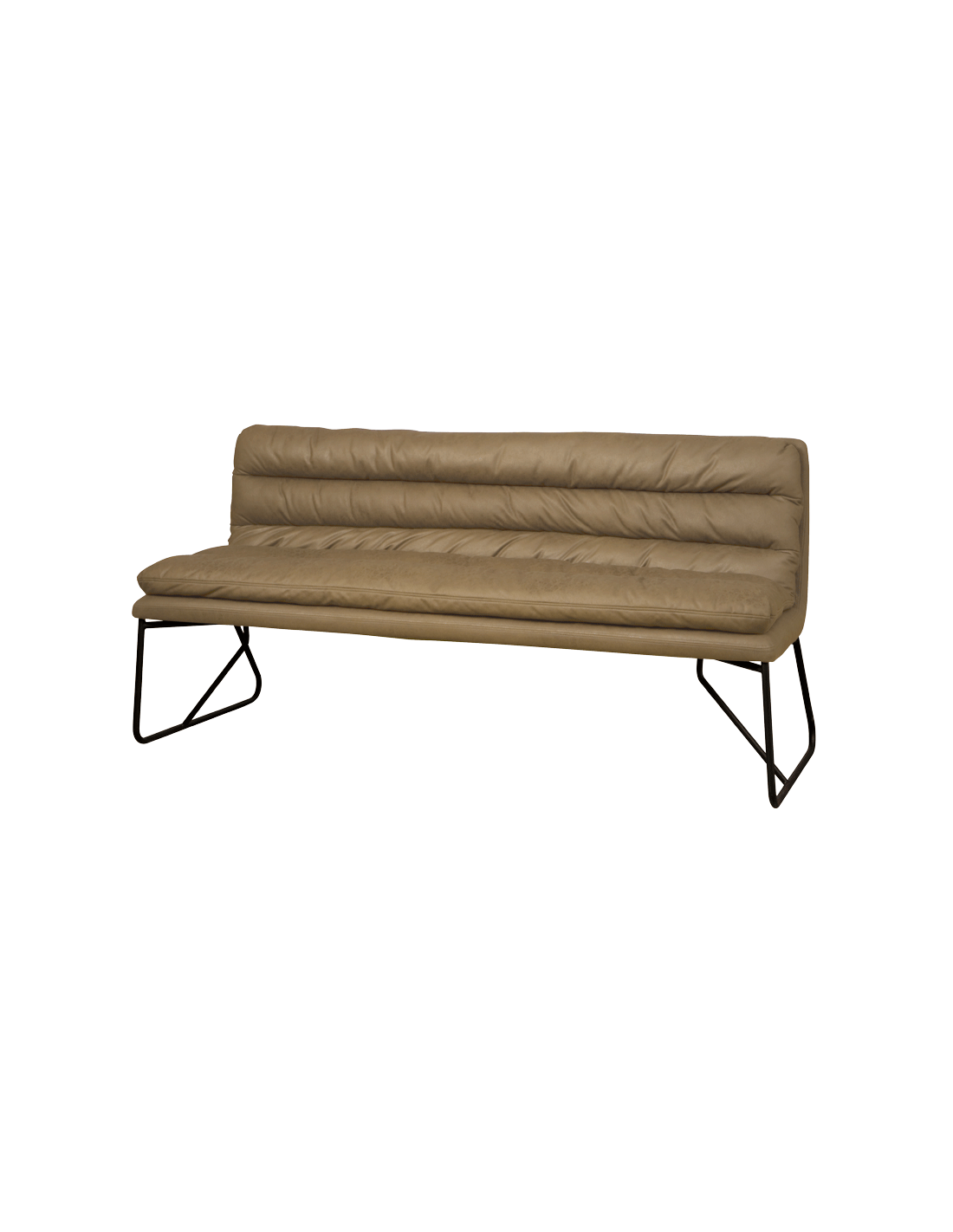 Spisebænk udført i et industrielt design af vintage grøn microfiber og stel i sortlakeret metal. Bænken måler 185 cm i bredden og 90 cm i højden og er polstret med højkvalitets skum.