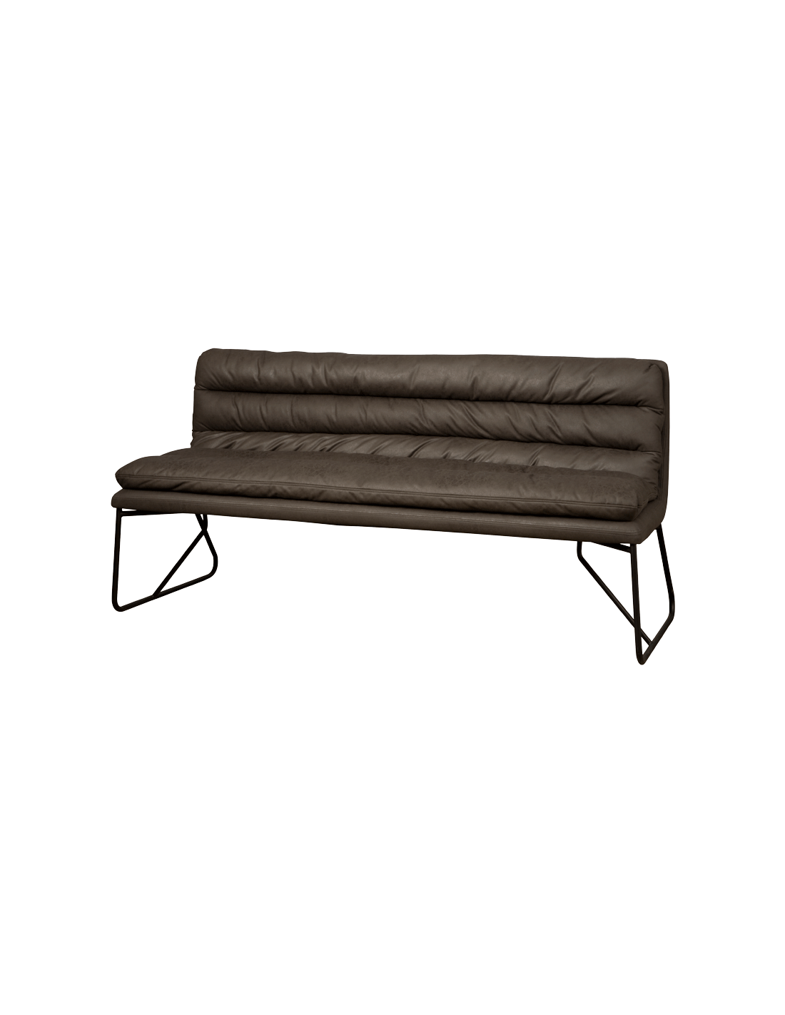 Spisebænk udført i et industrielt design af vintage antracit microfiber og stel i sortlakeret metal. Bænken måler 185 cm i bredden og 90 cm i højden og er polstret med højkvalitets skum.