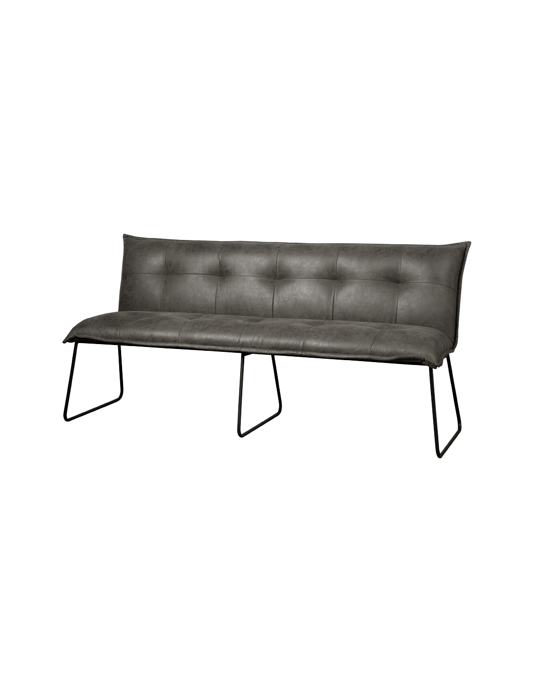 Spisebænk udført i et industrielt design af vintage grå microfiber og stel i sortlakeret metal. Bænken måler 155 cm i bredden og 90 cm i højden og er polstret med højkvalitets skum.