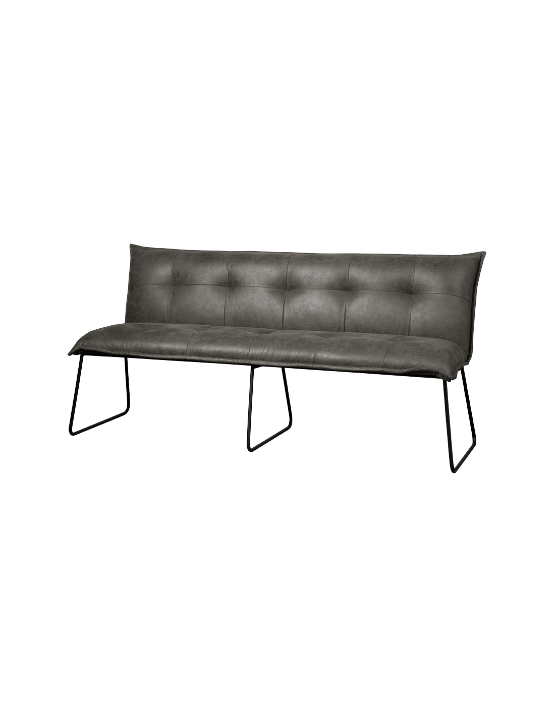 Spisebænk udført i et industrielt design af vintage grå microfiber og stel i sortlakeret metal. Bænken måler 185 cm i bredden og 90 cm i højden og er polstret med højkvalitets skum.