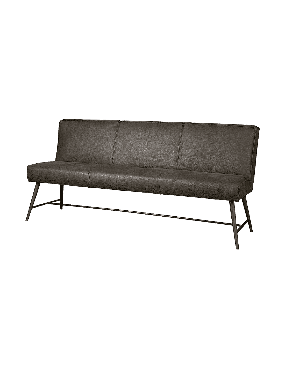 Spisebænk udført i et industrielt design af vintage grå microfiber og stel i antik metalgrå lakeret metal. Bænken måler 185 cm i bredden og 86 cm i højden og er polstret med højkvalitets skum. Bænken har 2 håndtag på bagsiden af ryglænet, således den er lettere at trække ud fra bordet.