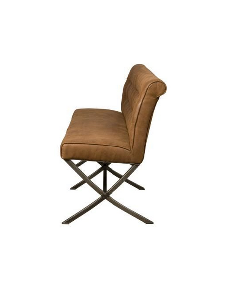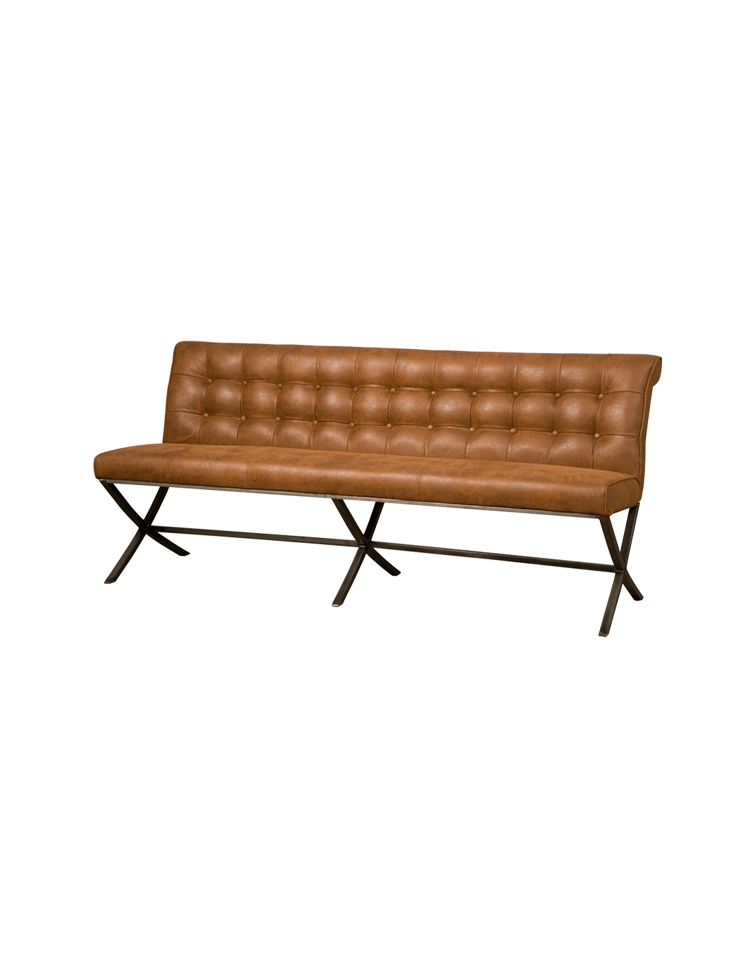 Spisebænk udført i et industrielt design af vintage cognac microfiber og stel i antik sortlakeret metal. Bænken måler 155 cm i bredden og 87 cm i højden og er polstret med højkvalitets skum.