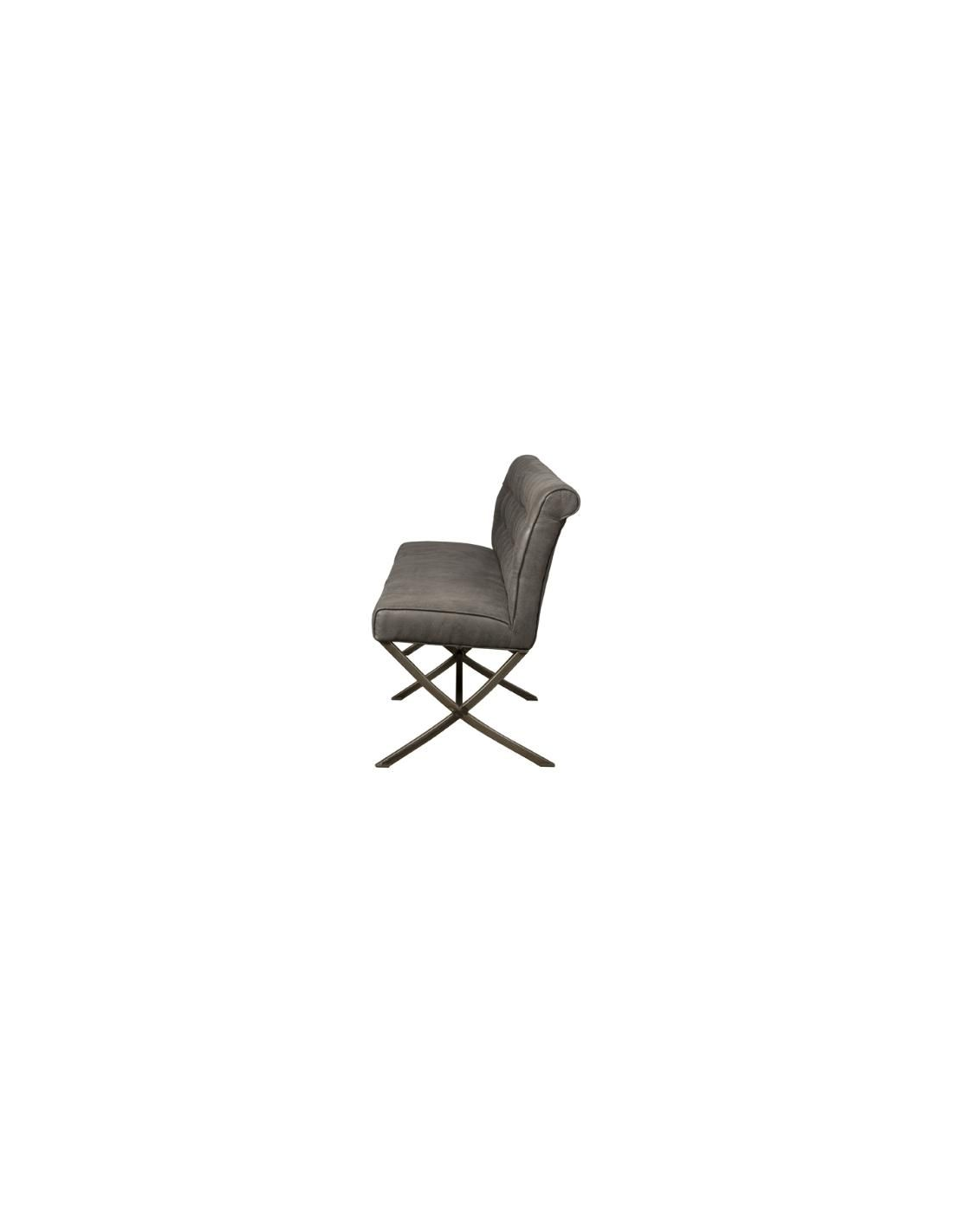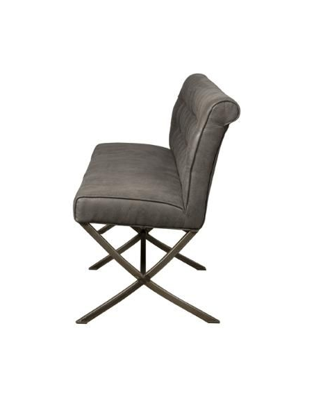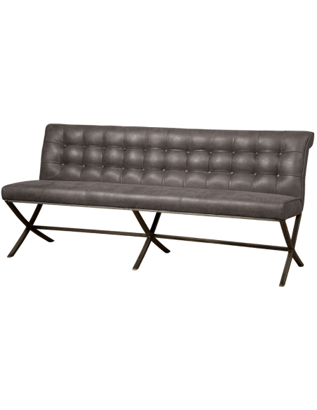 Spisebænk udført i et industrielt design af vintage grå microfiber og stel i antik sortlakeret metal. Bænken måler 185 cm i bredden og 87 cm i højden og er polstret med højkvalitets skum.