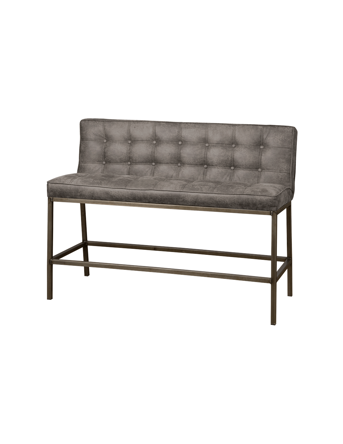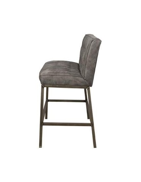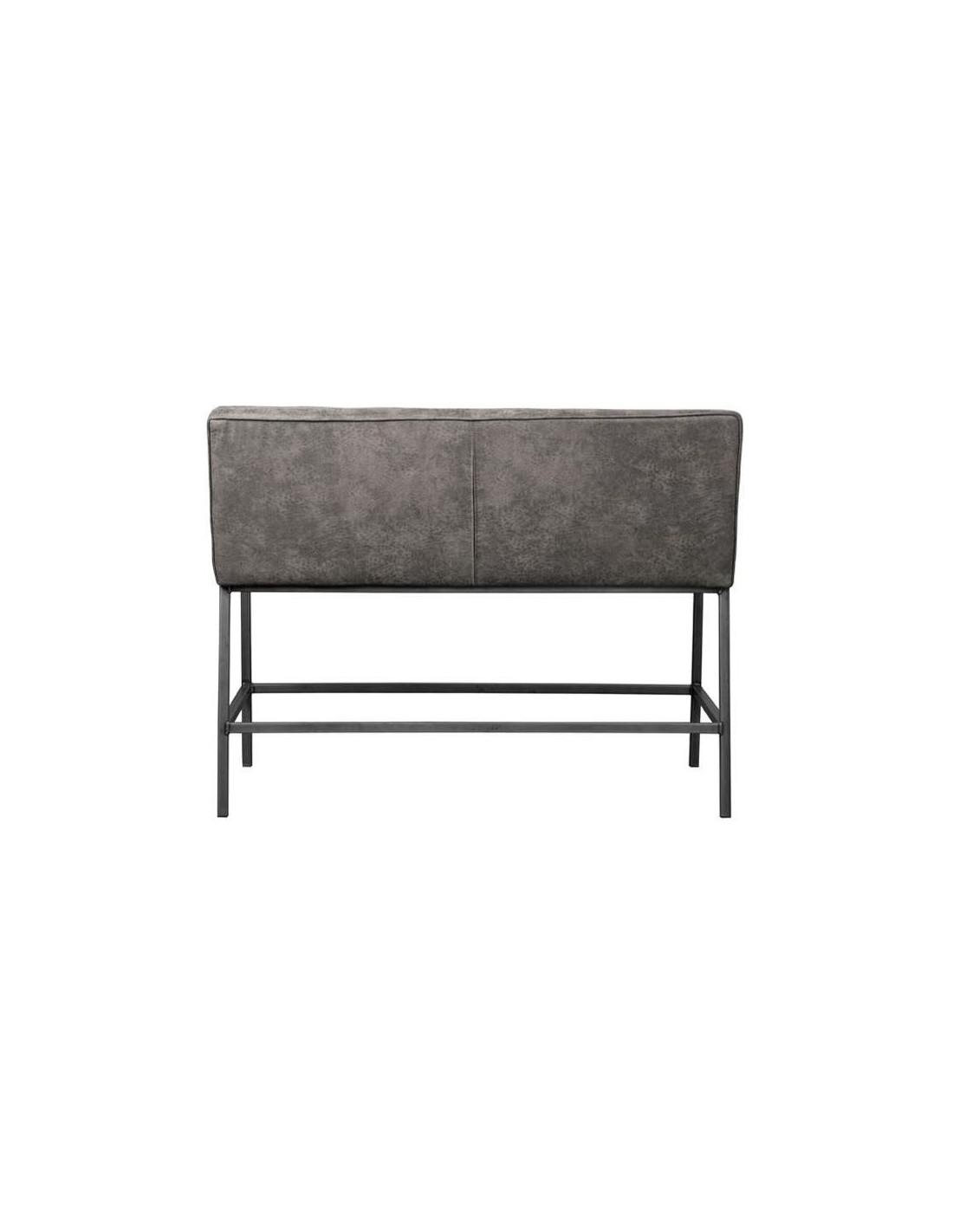 Bar bænk udført i et industrielt design af vintage grå microfiber og stel i antik metalgrå metal. Bænken måler 110 cm i bredden og 100 cm i højden og er polstret med højkvalitets skum.