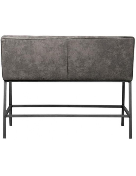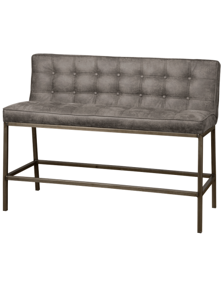 Bar bænk udført i et industrielt design af vintage grå microfiber og stel i antik metalgrå metal. Bænken måler 130 cm i bredden og 100 cm i højden og er polstret med højkvalitets skum.