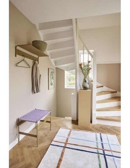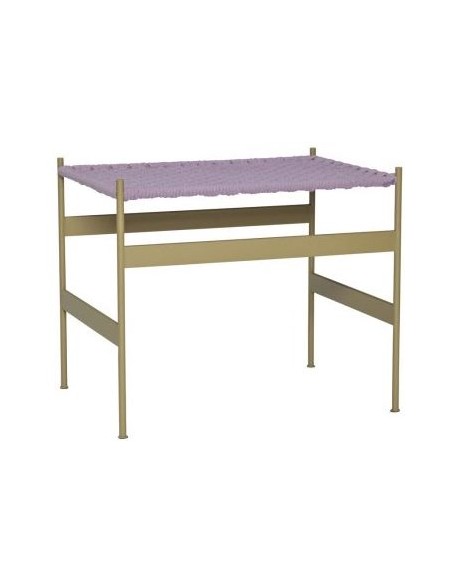 Hübsch Peri bænk i metal og bomuldsflet 56 x 42 cm - Khaki/Lilla