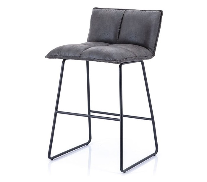Sæt med 2 barstole i et moderne design, fremstillet i antracit polyester med coating (føles som ruskind) og med stel i sortlakeret metal. Stolen måler 87 cm i højden og med siddehøjde på 64 cm.