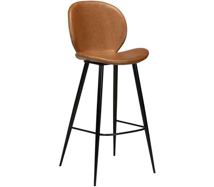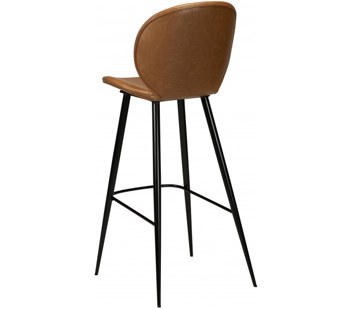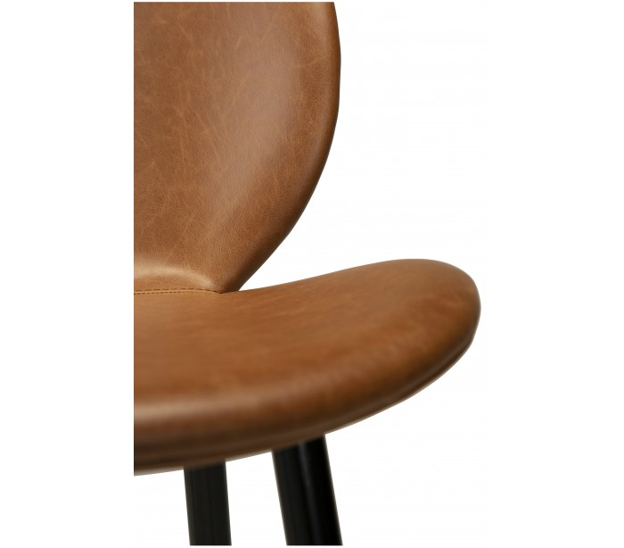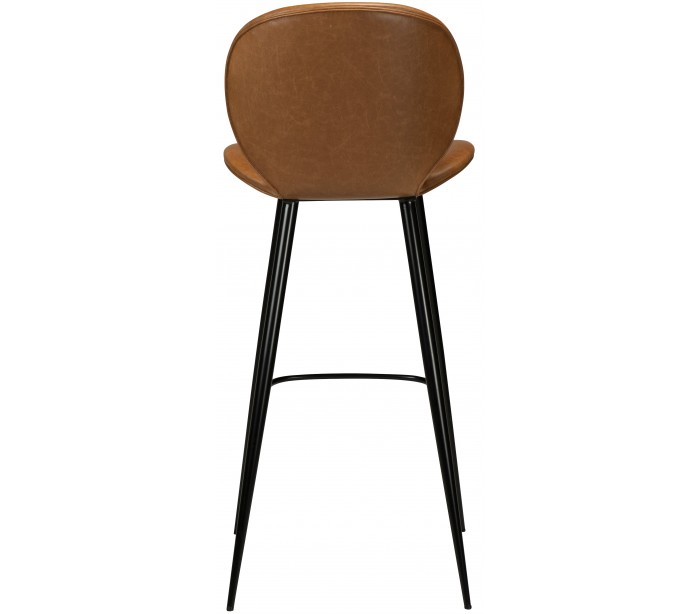 Barstol i et smukt design, fremstillet med sæde i vintage lysebrun kunstlæder og ben i sortlakeret metal. Barstolen måler 110 cm i højden over ryggen og 77 cm i siddehøjde.