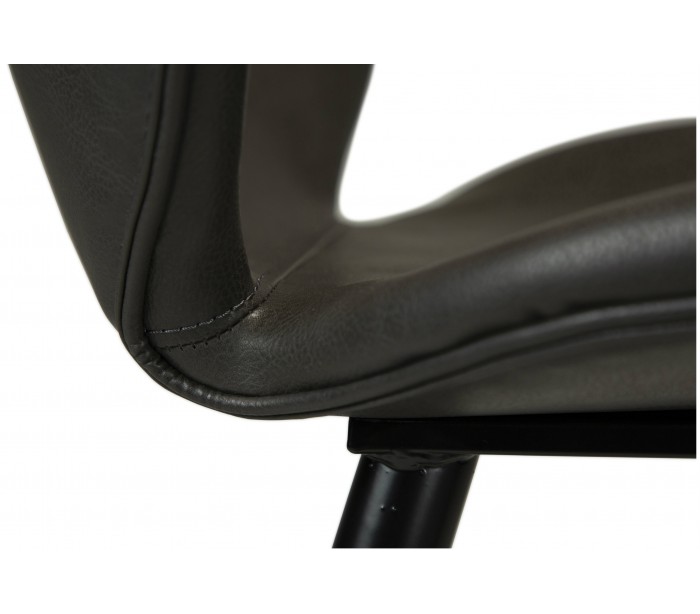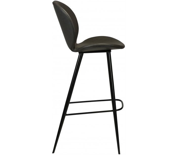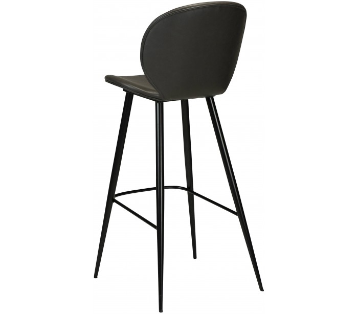 Barstol i et smukt design, fremstillet med sæde i vintage grå kunstlæder og ben i sortlakeret metal. Barstolen måler 110 cm i højden over ryggen og 77 cm i siddehøjde.