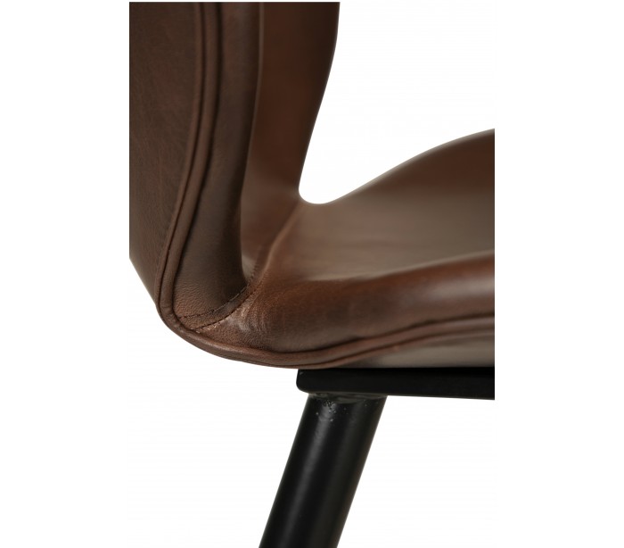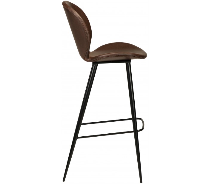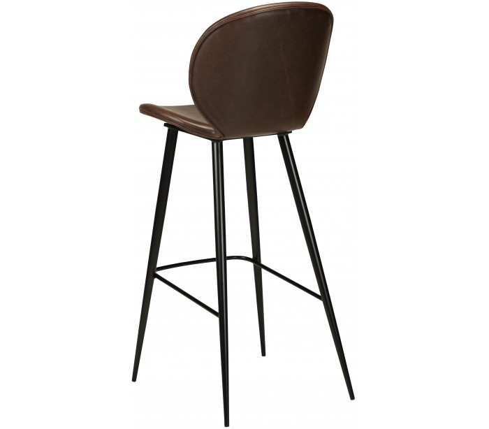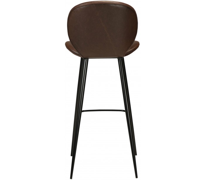 Barstol i et smukt design, fremstillet med sæde i vintage kakao kunstlæder og ben i sortlakeret metal. Barstolen måler 110 cm i højden over ryggen og 77 cm i siddehøjde.