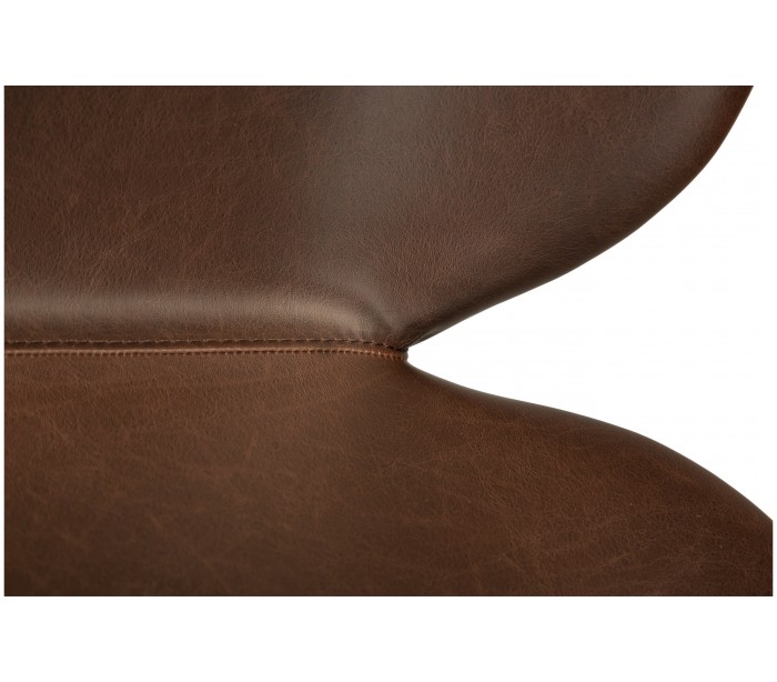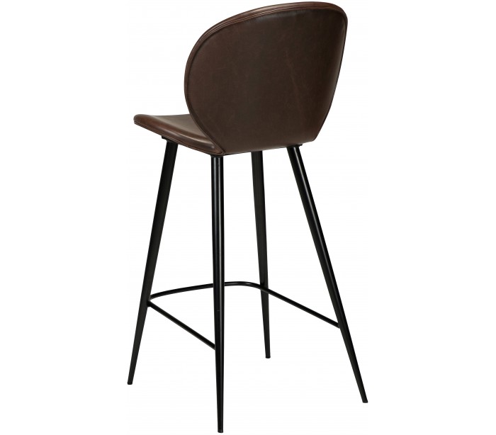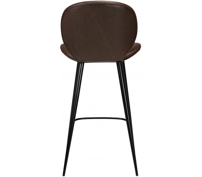 Barstol i et smukt design, fremstillet med sæde i vintage kakao kunstlæder og ben i sortlakeret metal. Barstolen måler 100 cm i højden over ryggen og 67 cm i siddehøjde.