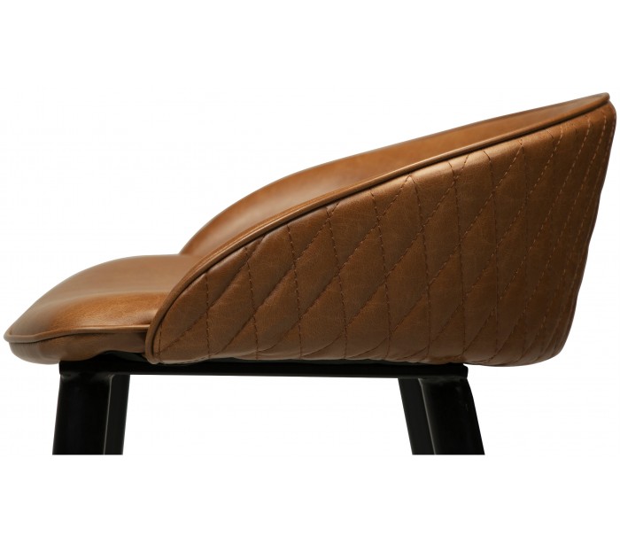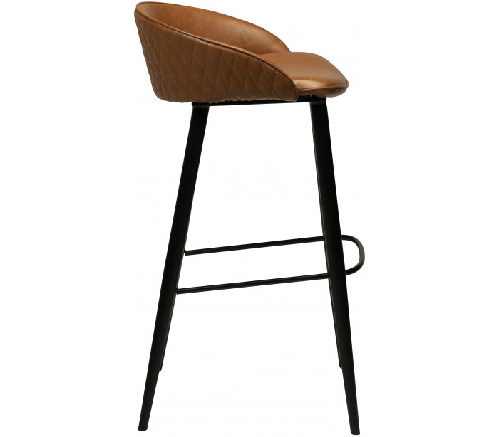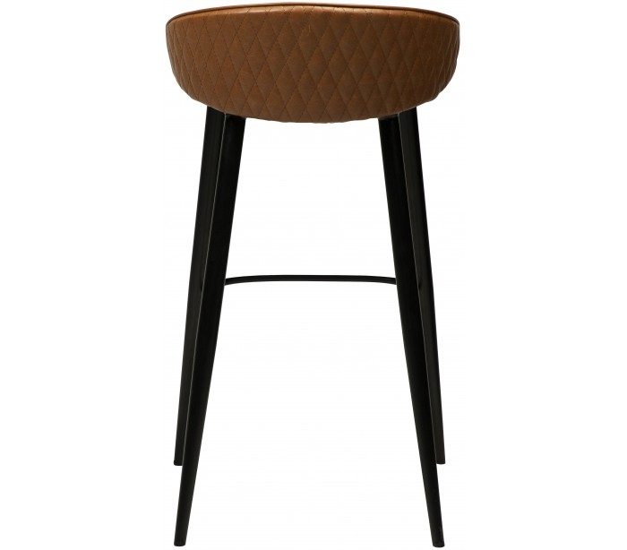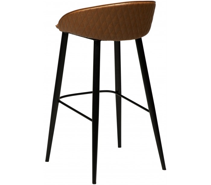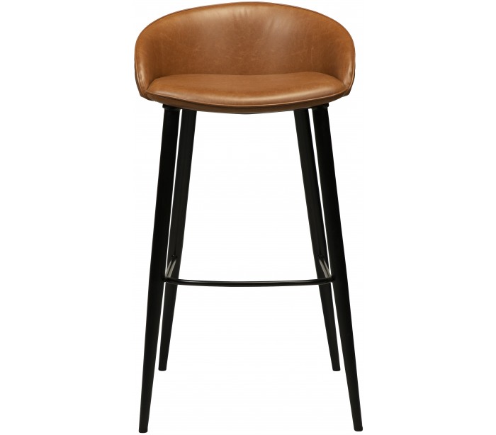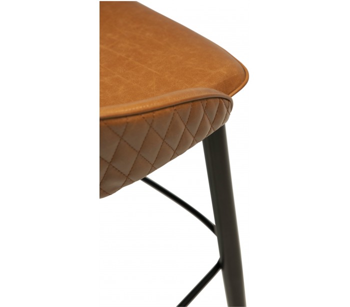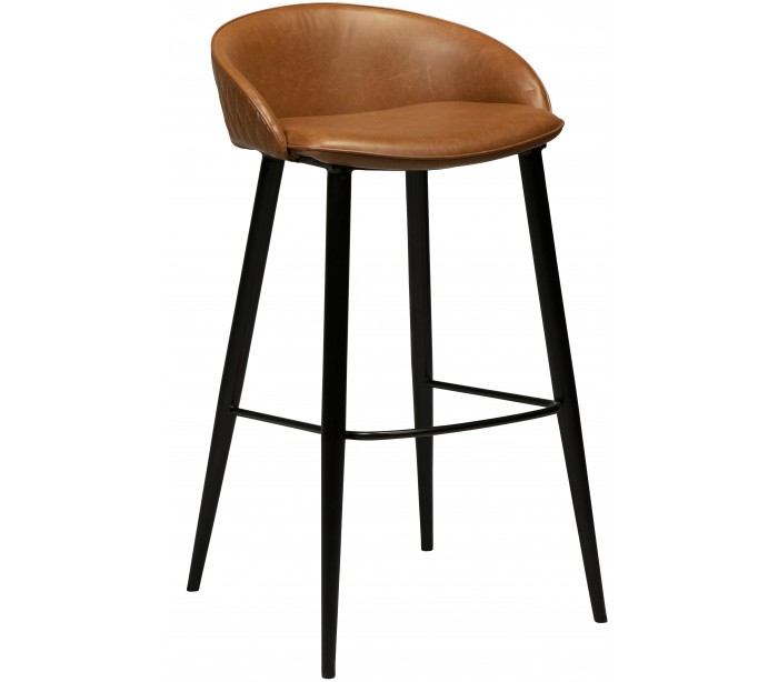 Barstol i et smukt design, fremstillet med sæde i vintage lysebrun kunstlæder og ben i sortlakeret metal. Barstolen måler 91 cm i højden over ryggen og 76 cm i siddehøjde.