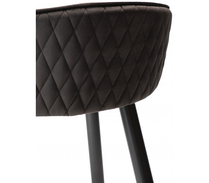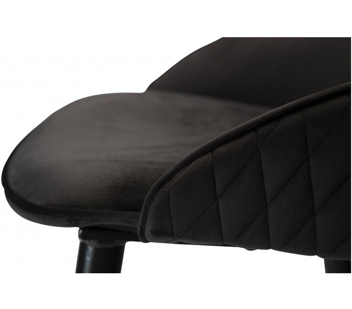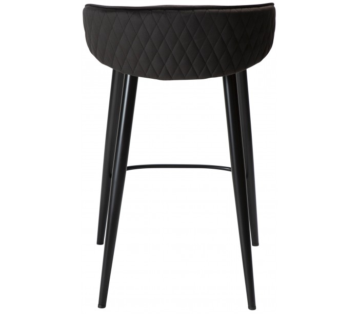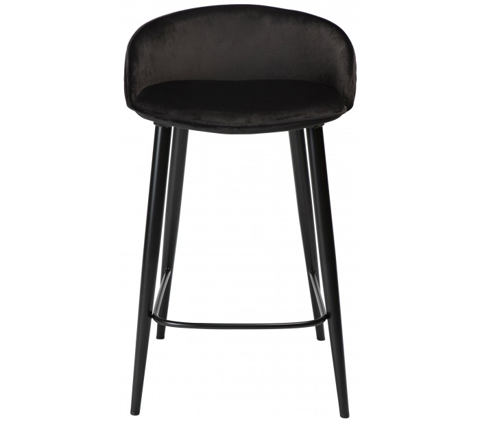 Barstol i et smukt design, fremstillet med sæde i meteorit sort velour og ben i sortlakeret metal. Barstolen måler 81 cm i højden over ryggen og 66 cm i siddehøjde.