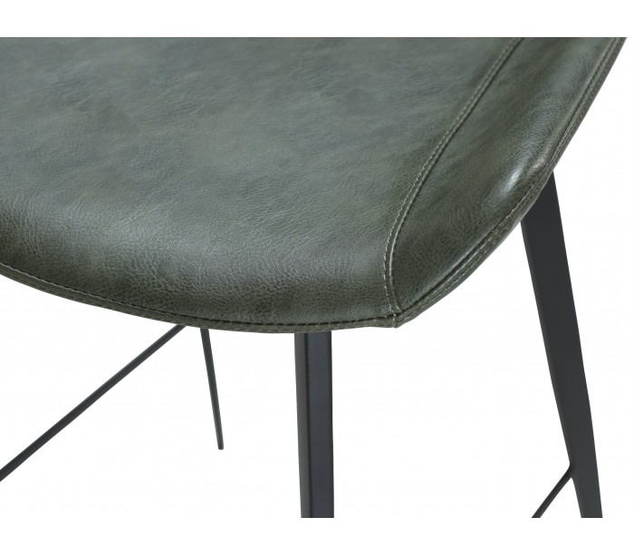 Barstol i et design fremstillet med sæde i vintage grøn kunstlæder og ben i sortlakeret metal. Barstolen måler 101 cm i højden over ryggen og 75 cm i siddehøjde.