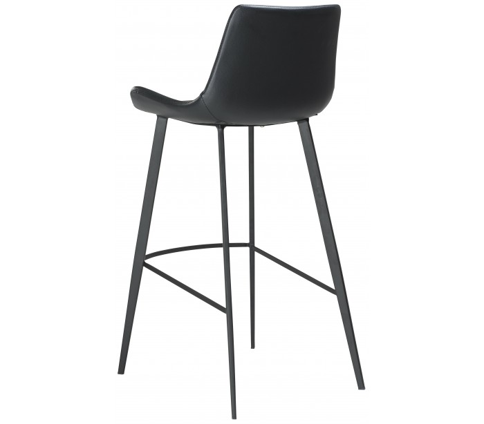 Barstol i et design fremstillet med sæde i sort kunstlæder og ben i sortlakeret metal. Barstolen måler 101 cm i højden over ryggen og 75 cm i siddehøjde.